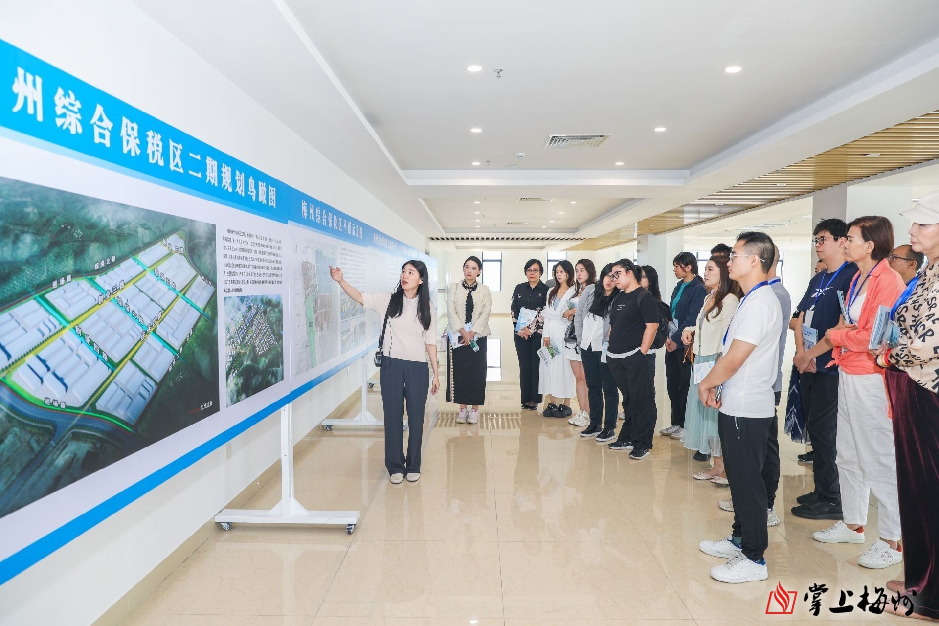 “粤精彩 粤有为”港澳青年成长计划走进世界客都——梅州活动中,青年们前往梅州综合保税区梅州市跨境电子商务清关中心参观。