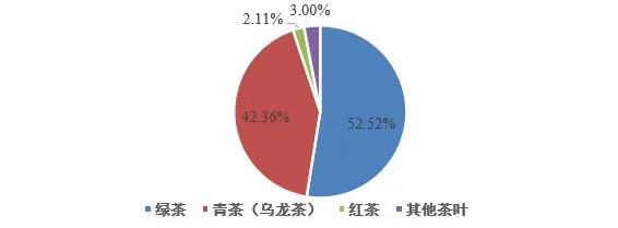 绿茶占52.52%,青茶(乌龙茶)占42.36%