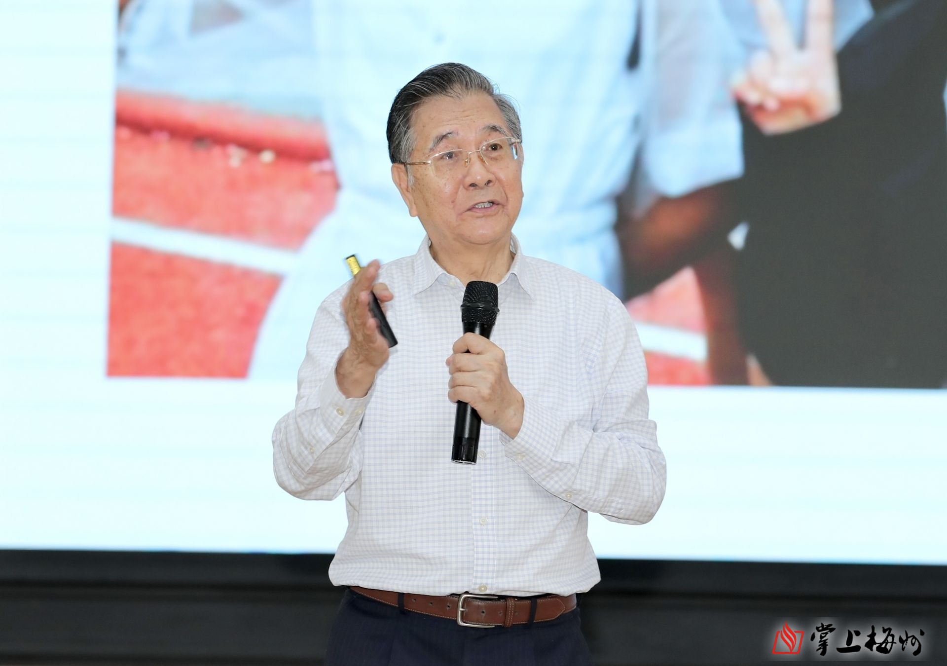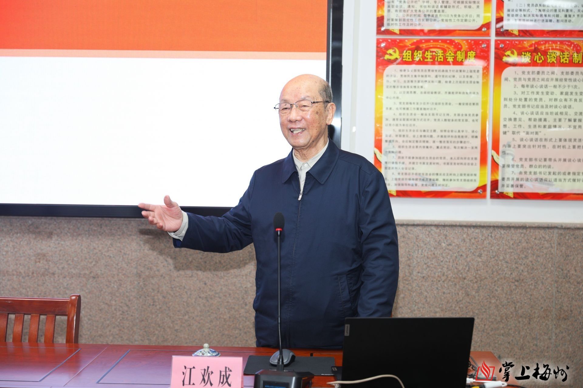 在梅期间,江欢成院士走进学校,与学生们用幽默的语言交流。他勉励学生们要放松心态,专攻自己擅长领域,厚望学生们能“后来居上”“一代更比一代强”。