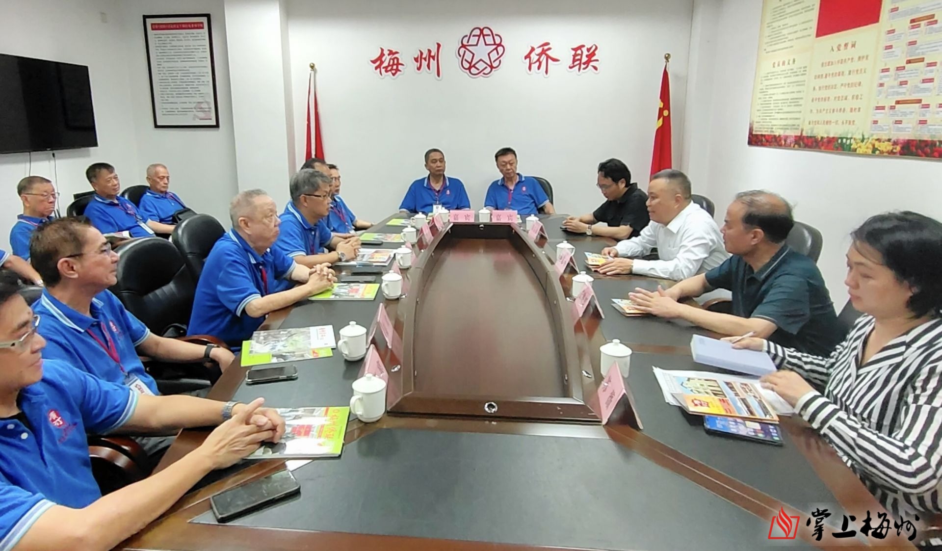 掌上梅州讯 5月13日上午,马来西亚槟榔屿广东暨汀州会馆访问团一行到访梅州市侨联。梅州市侨联主席汤志平会见访问团一行并座谈交流,市侨联二级调研员张映虹、四级调研员陈富源出席座谈。