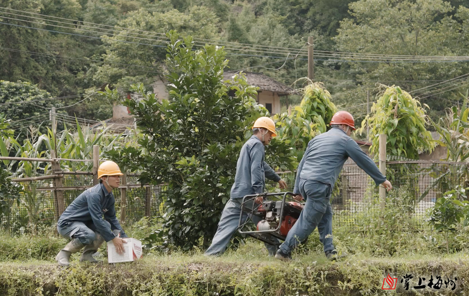 6月22日,在平远县泗水镇,洪水退去后,电杆倒伏,电线断裂、挂满垃圾,农田坑洼不平、满是泥浆。从成文村委到枧头生产队,本就不宽的村道被洪水冲去大半,夹杂着树木和碎石的淤泥零零散散地堆积在边坡和沿途道路上,车辆已无法通行。为了不耽误抢修进度,供电抢修人员和热心村民一道,硬是通过肩扛的方式,合力将近40公斤重的应急发电机安全护送通过危险路段。临时搭建的4公里紧急通道,他们整整走了90多分钟,汗水浸透了大家的衣服。正是在大家的通力合作下,成文村枧头生产队的群众终于在6月22日当天重新用上了电。