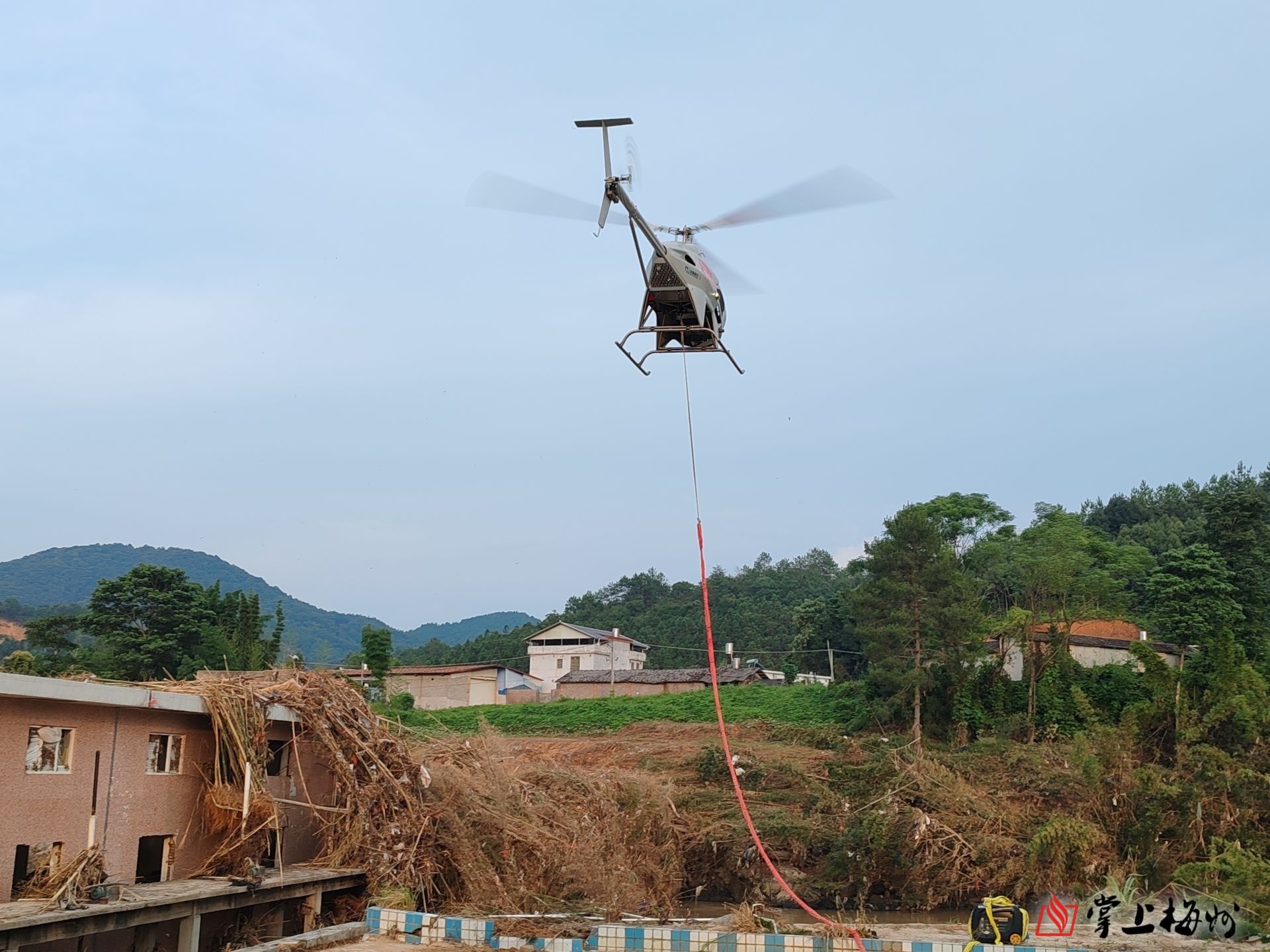 经过多方协调,最终由梅州市应急管理局调配直升机紧急支援,3名供电所员工和发电机通过直升机跨过湍急河流抵达对岸,并于当天下午15时在良进石村接入发电机。