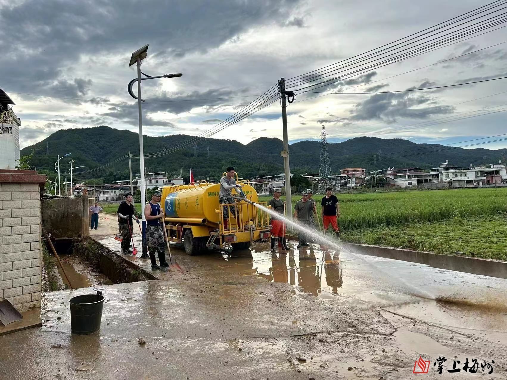 五华县森林消防救援大队派出35人到广福镇参与清淤,五华县水务集团派出4部小挖机、4部小铲车支援新铺镇,五华县应急管理局支援新铺镇水泵水带、救生衣、锄头、铁铲等应急设备,团五华县委发动五华县九九五青年志愿先锋队志愿者协助新铺镇转移群众、筹集16万元购置急需紧缺物资送抵蕉岭县……众志成城、同舟共济,在众多力量的支持下,灾区生产生活秩序正加快恢复中。
