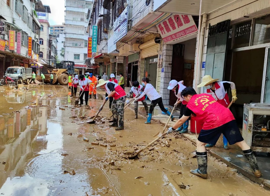 灾情发生后,梅州各级团组织在地方党委、政府的组织领导下,迅速通过官网、广播电视、微信群等向本地团员青年发出倡议,并招募组建青年突击队、青年志愿者服务队有序投入抗洪抢险、应急救援、后勤保障等一线工作。