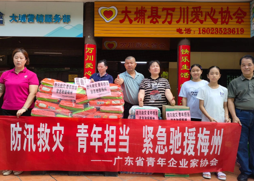 在团中央、团广东省委的号召下,中国青年创业就业基金会、广东省青年联合会、广东省青年企业家协会、广东省青年商会、梅州市青年联合会、梅州市青年企业家协会等单位通过链接资源,先后有好特卖、华糖云商、Oatly、上好佳、认养一头牛、莫小仙等爱心企业向梅州捐赠油、米、面、水、牛奶、零食等灾区急需物资5车和善款,合计价值约80万元。