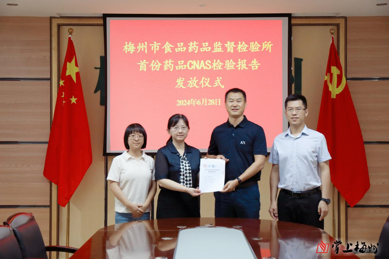 本次检验报告的发放标志着市食药检所具备了国际标准的实验室管理水平和国际认可的技术能力,出具的报告可获得国际互认,为“梅州药检”品牌建设增添了新引擎,为梅州药企开拓海外市场争取了更多的时间优势和效率优势,有效推动了梅州生物医药产业高质量发展。