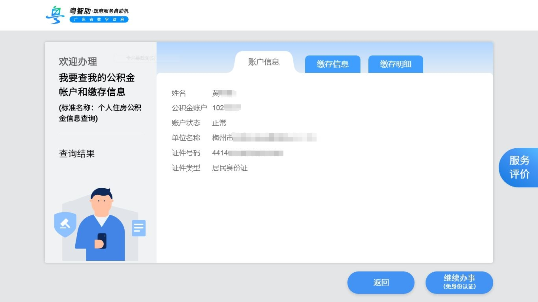 查看结果,即可查询个人账户信息、缴存信息以及缴存明细。
