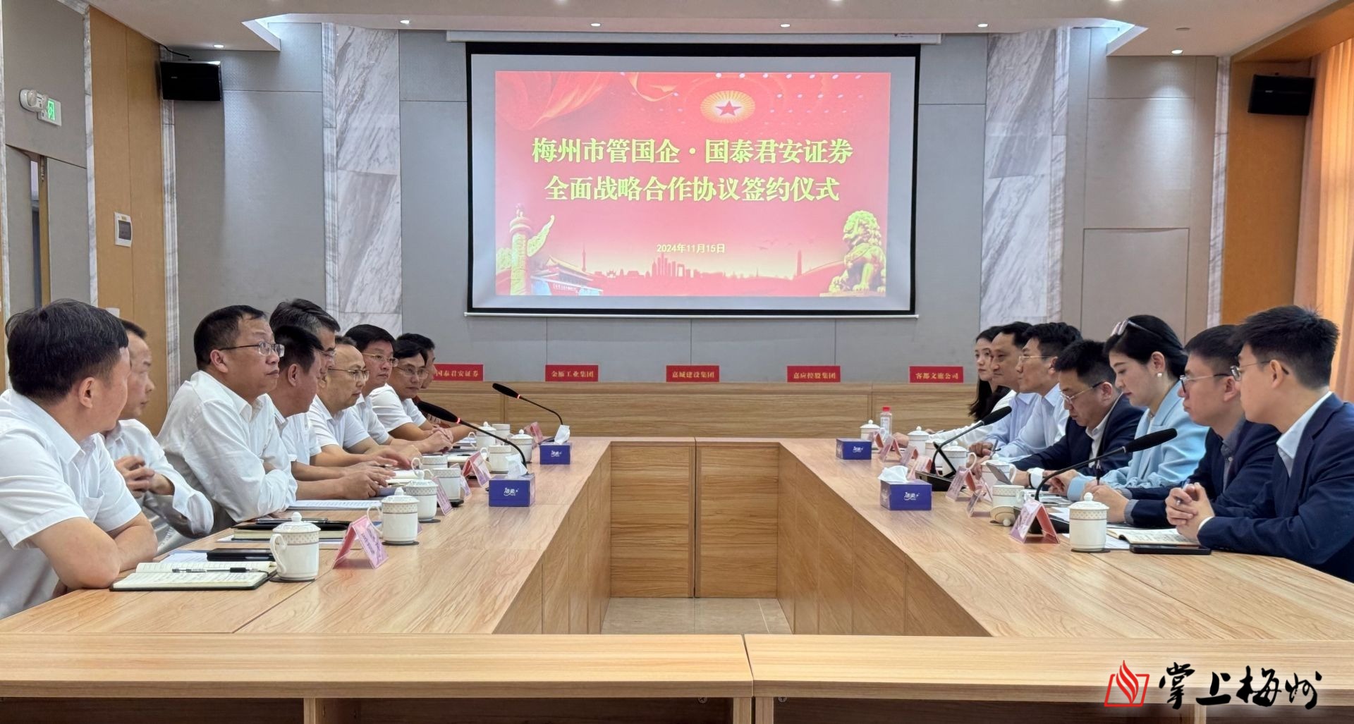掌上梅州讯 11月15日,由梅州市国资委、国泰君安证券梅州新中路营业部共同举办的“把握资本市场新机遇,激活国企发展新动能”专题培训暨全面战略合作协议签约仪式在梅城举行,助力梅州市企业、机构更好理解最新市场政策,优化资本运作策略。