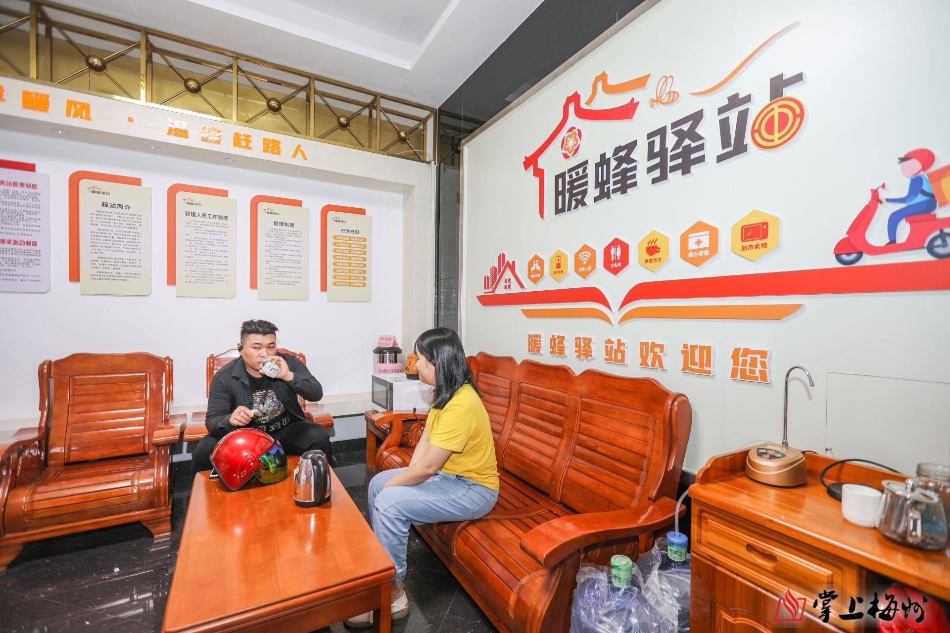 梅县区“暖蜂驿站”让新就业群体切实感受党组织的温暖。(吴腾江摄)