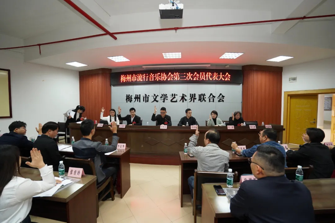 大会听取并审议通过了梅州市流行音乐协会第二届理事会工作报告和财务工作报告,审议通过了《梅州市流行音乐协会第三届理事会选举办法》等事项。大会选举产生了梅州市流行音乐协会第三届理事会、监事会、领导班子。曾辉彬当选会长,刘谦隆当选常务副会长,王丹、肖金勇、李佳倪、李忠华、丘雅媚、谢晓欢当选副会长,郭萍萍当选秘书长,钟巧玲当选监事长。