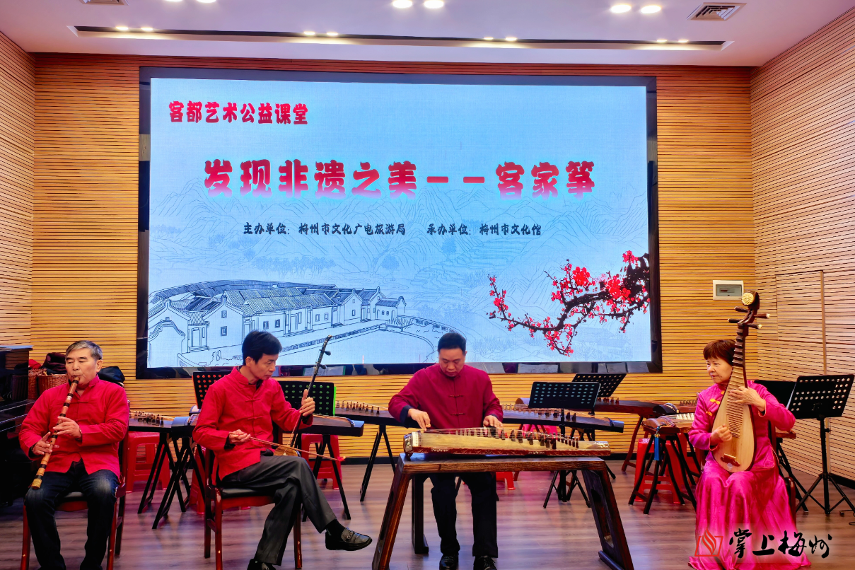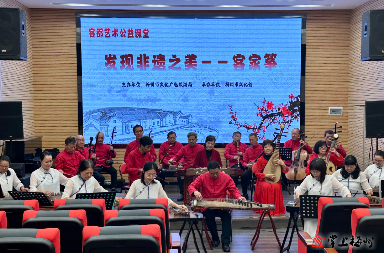掌上梅州讯 11月30日上午,由梅州市文化广电旅游局主办、梅州市文化馆承办的11月客都艺术公益课堂“发现非遗之美——客家筝”活动,在梅州市文化馆群星剧场圆满结束。