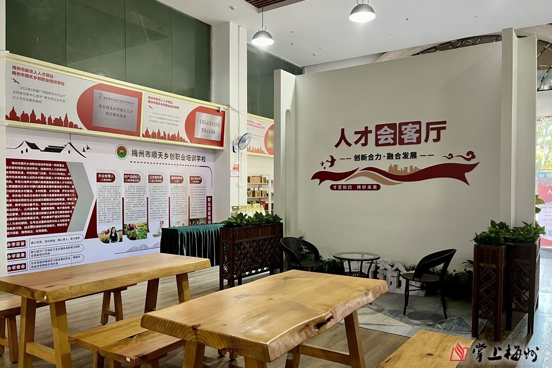 来到梅州市新农人人才驿站,“乡村振兴 人才先行”四个大字首先映入眼帘。缓步向内,人才会客厅、人才书吧、人才会议室……宽敞明亮、别具特色。
