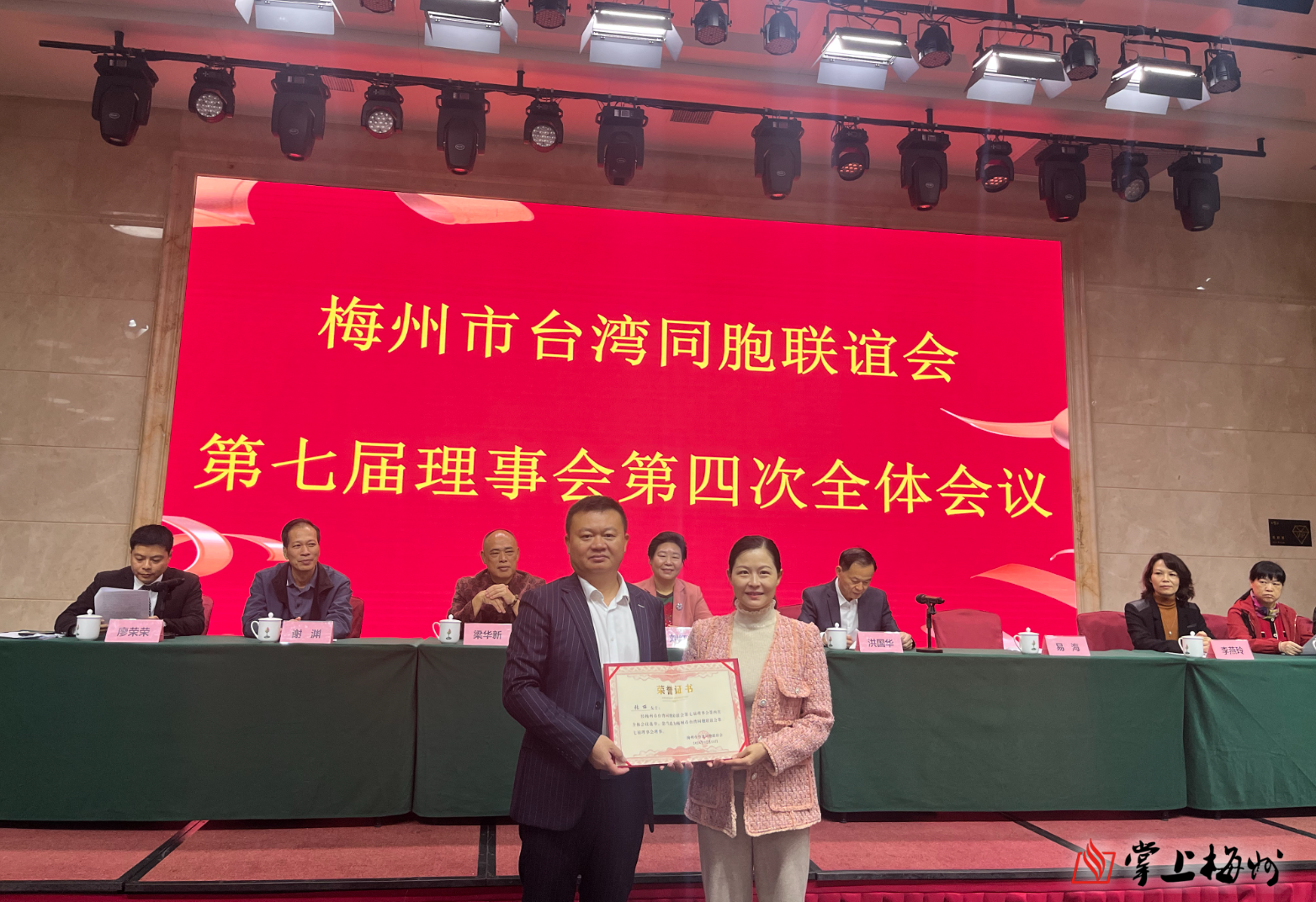 掌上梅州讯 12月11日上午,梅州市台湾同胞联谊会(以下简称“梅州市台联”)第七届理事会第四次全体会议在梅城召开。市委台港澳办主任洪国华、市纪委监委驻市委统战部纪检监察组组长刘红茹等受邀出席会议并讲话,全市38位理事参加。