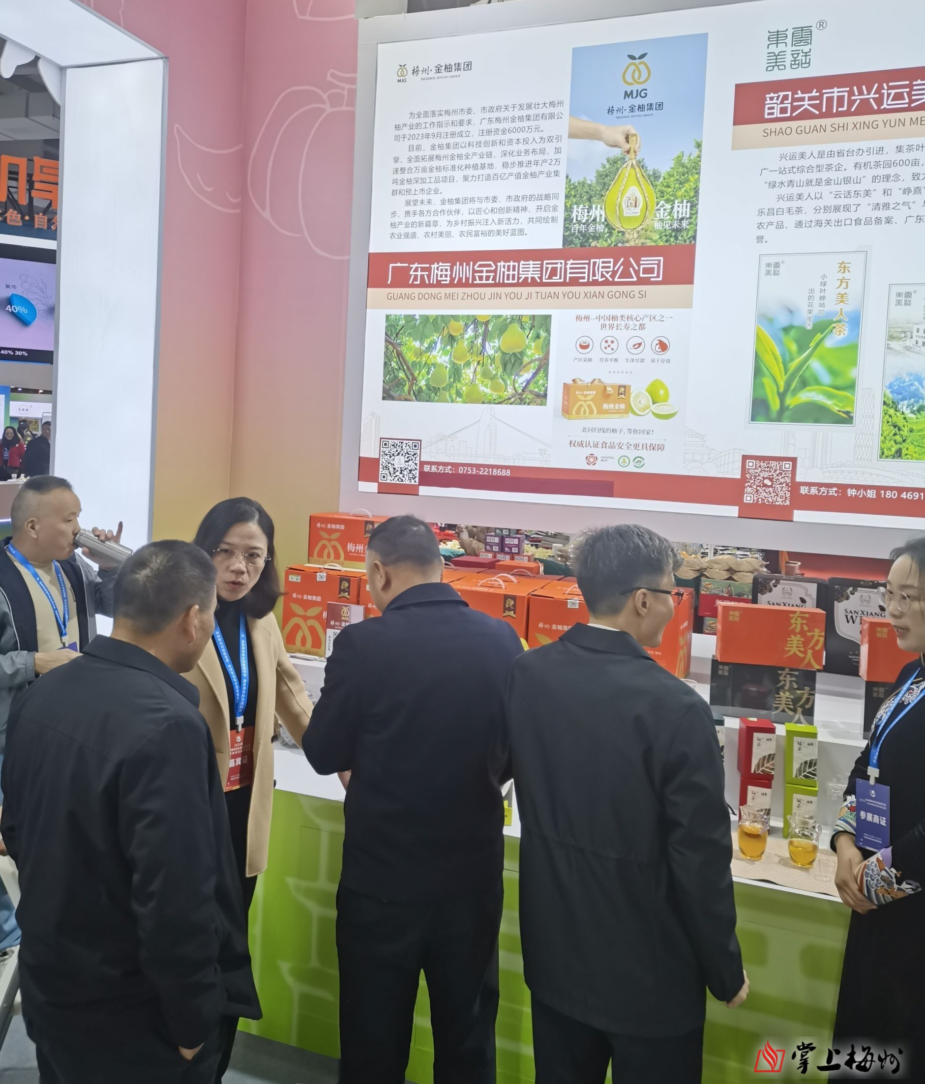在梅州市农业农村局的精心组织下,来自我市的广东梅州金柚集团有限公司、客都农创(梅州)产业发展有限公司、梅州市荷灵农林发展有限公司、梅州市明山嶂茶业有限公司等4家企业参展,现场展出了梅州柚及其深加工产品、客都米、客家炒绿、寿乡水等“梅字号”产品,吸引了不少消费者前来品尝购买,以及部分参展商、采购商交流对接、洽谈合作。