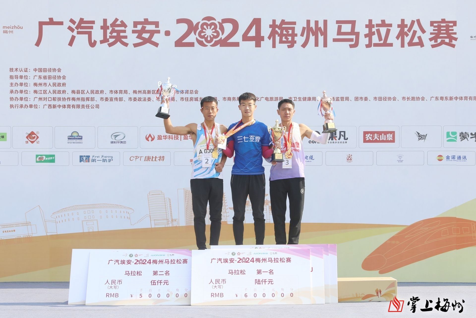最终经过激烈角逐,来自山东青岛的马猛、来自埃塞俄比亚的Degefa Yenenesh Leta分获马拉松男子组、女子组冠军;来自山东的王佩林、来自福建厦门的曾婷分获半程马拉松男子组、女子组冠军;梅雁东山学校的叶铭浩获得欢乐跑冠军。值得一提的是,本届马拉松赛共有3项赛会纪录被打破,分别是马拉松男子组、女子组及半程马拉松男子组赛会记录。