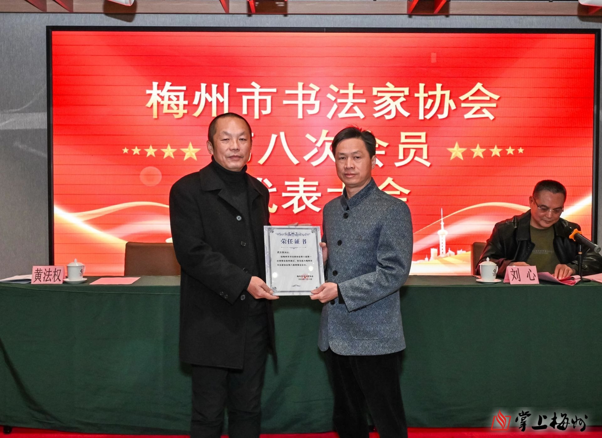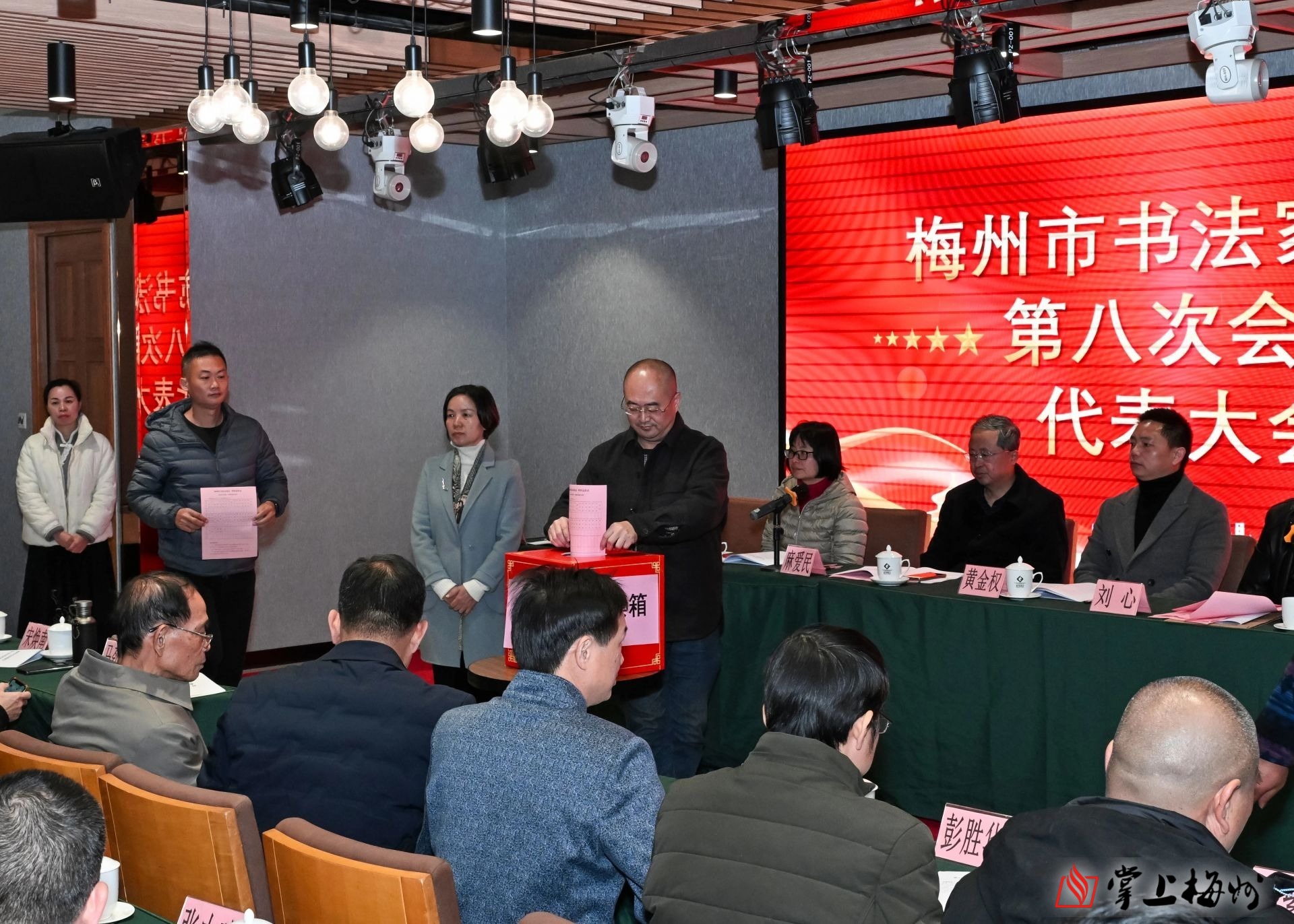 掌上梅州讯 近日,梅州市书法家协会第八次会员代表大会召开,会议选举产生了新一届主席团和理事会,圆满完成协会换届工作。