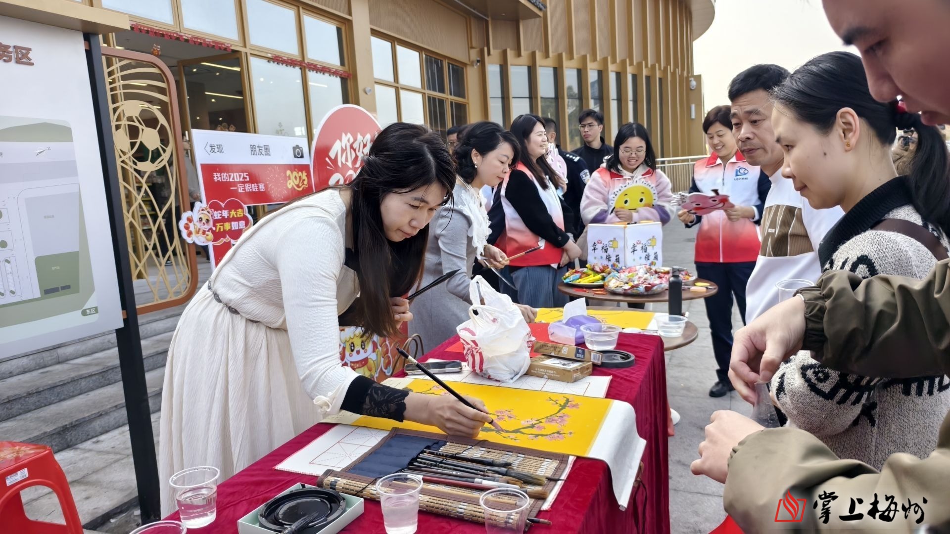 此外,服务区还为返乡司乘人员提供了免费热饮,现场还有书法爱好者挥毫泼墨,书写出一副副寓意吉祥春联和字画,吸引了不少返乡的司乘前来挑选自己喜欢的春联和字画,他们的脸上都洋溢着幸福的笑容。