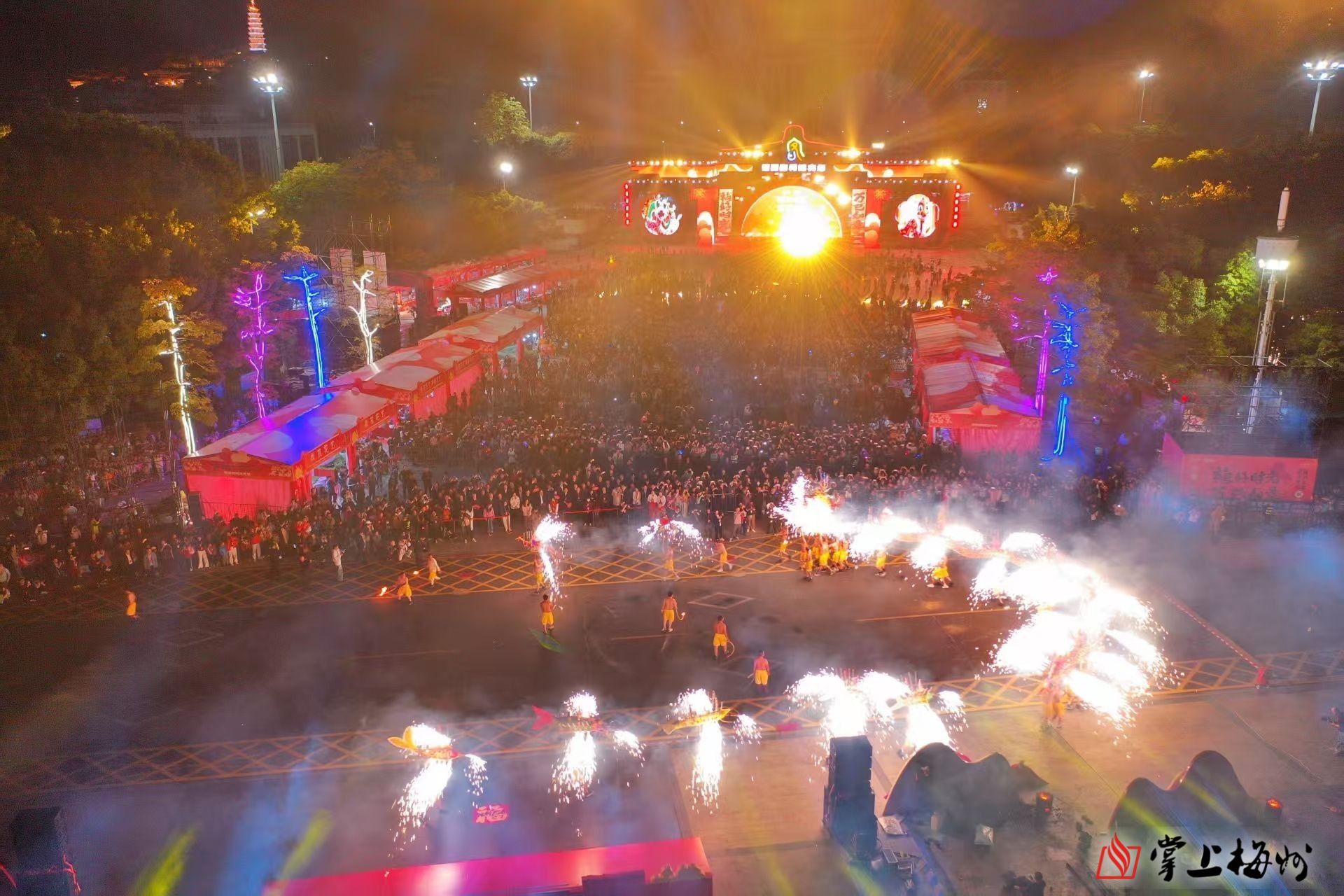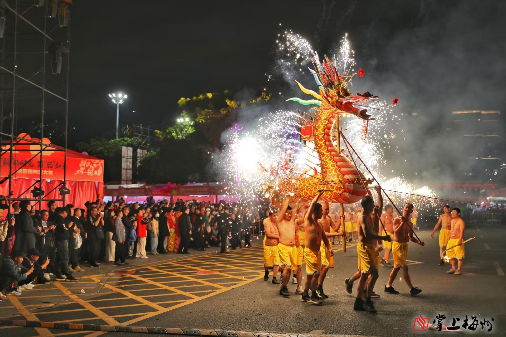 晚上7点多,院士广场内锣鼓喧天,舞狮舞龙队伍陆续入场,领导嘉宾共同推杆,标志着“梅”好时光 万“巳”如意——“请到梅州过大年”系列活动正式启动。