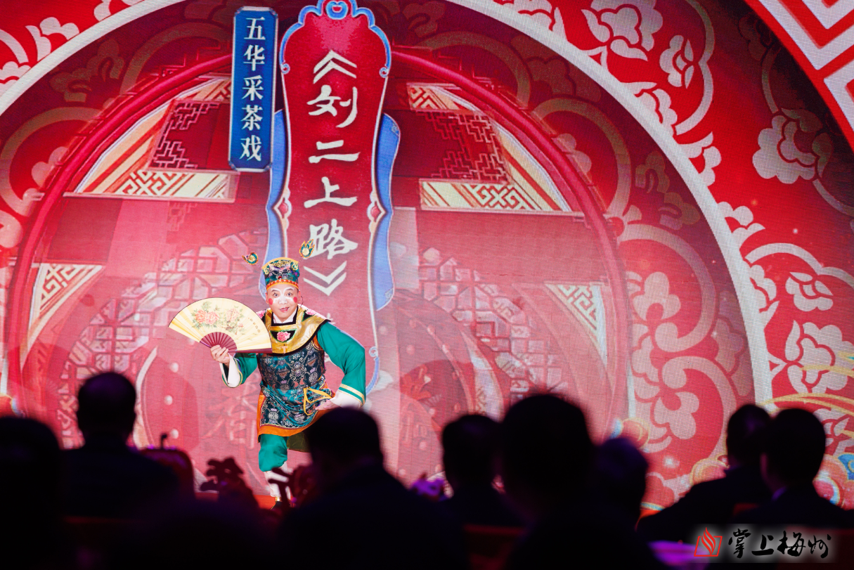 来自广东汉剧传承研究院的黄丽华、梅州市客家山歌传承保护中心的潘倩、潘锡岳,五华县采茶戏传承保护中心的李鹏辉以精湛的技艺、饱满的热情,将广东汉剧、客家山歌、五华采茶戏等梅州非物质文化遗产的独特魅力展现得淋漓尽致,轮番登台展示近年来我市文艺事业的丰硕成果。