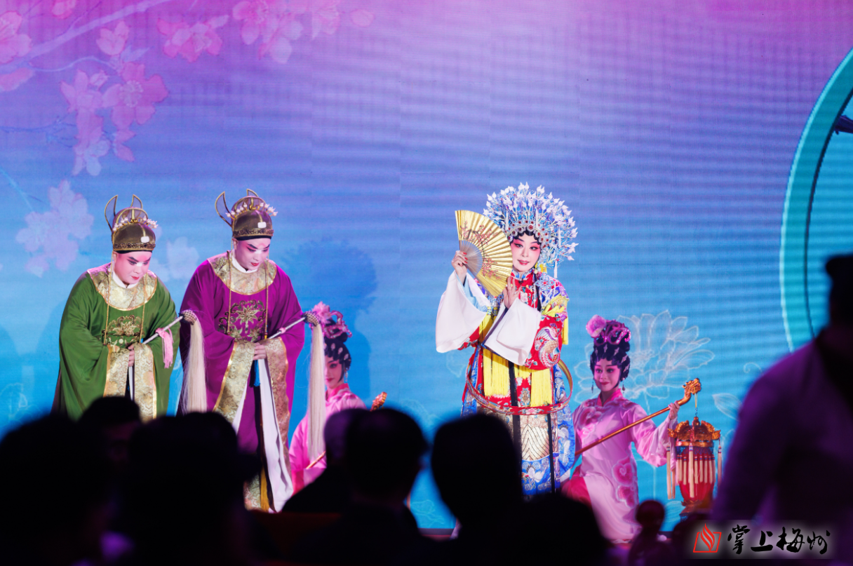 演出当晚,广东汉剧经典折子戏《贵妃醉酒》选段精湛上演,曾被周恩来总理誉为“南国牡丹”的广东汉剧向观众演绎朴实淳厚、端庄秀丽的岭南粤韵。随后,五华采茶戏《刘二上路》以诙谐逗趣的唱词和念白引得掌声、笑声不断。紧接着,客家山歌剧《桃花雨》则为现场观众带来了一场别具韵味的梅州客家山歌盛宴。