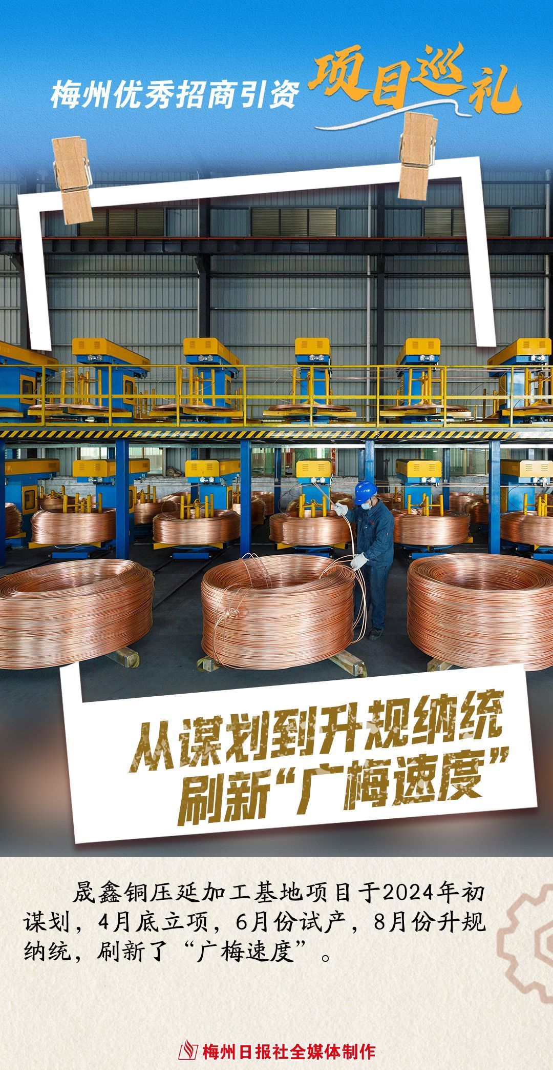 据晟鑫公司业务经理李浚彬介绍,晟鑫铜压延加工基地项目于2024年初谋划,4月底立项,6月份试产,8月份升规纳统,刷新了“广梅速度”。“项目已建成5条生产线,基本达到满负荷生产。”李浚彬告诉记者,项目建成达产后,年工业产值预计可达100亿元以上。