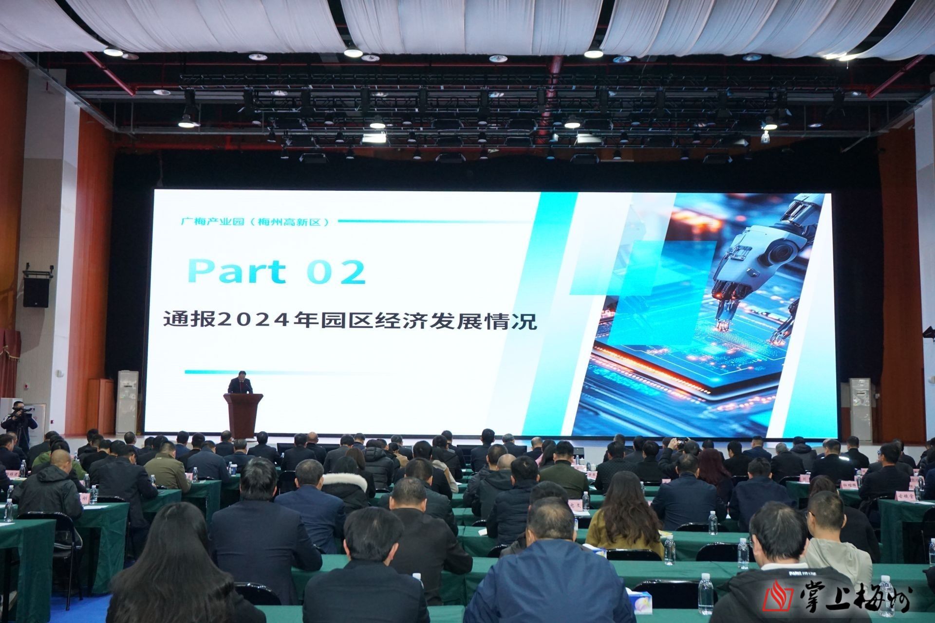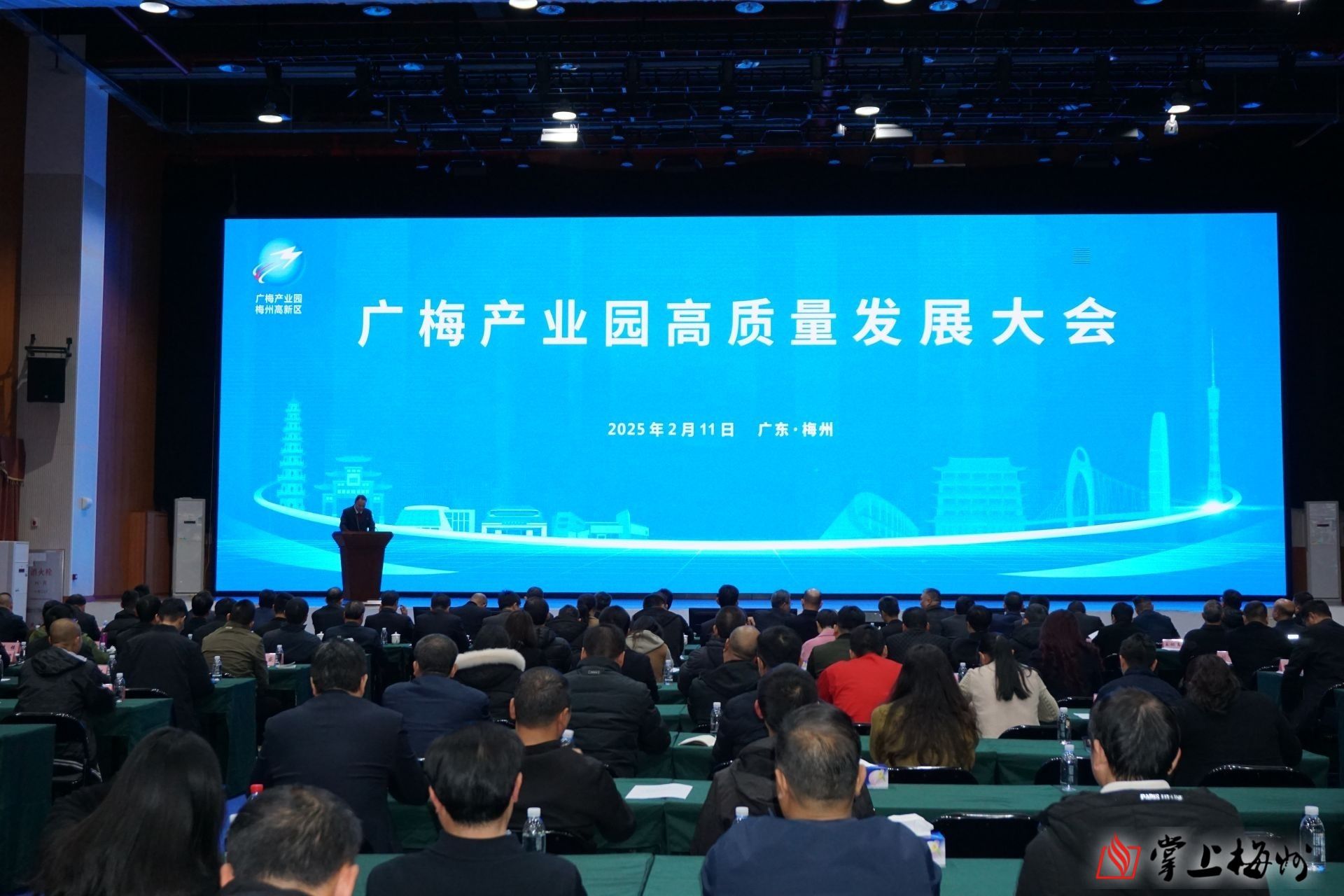 掌上梅州讯 2月11日下午,广梅产业园高质量发展大会在广梅产业园绿创中心召开。市委常委、市政府党组副书记、副市长蒋鲲,市政府党组成员、广州对口帮扶协作梅州指挥部指挥长、广梅产业园党工委书记张文杰,广州对口帮扶协作梅州指挥部副指挥长、广梅产业园党工委副书记、管委会主任谢海佳,以及在管委会挂职的广州帮扶干部,机关及下属事业单位全体在编干部职工,国企负责人,派驻机构负责人,规上企业负责人,在建、筹建重点项目负责人,金融机构代表等参加会议。