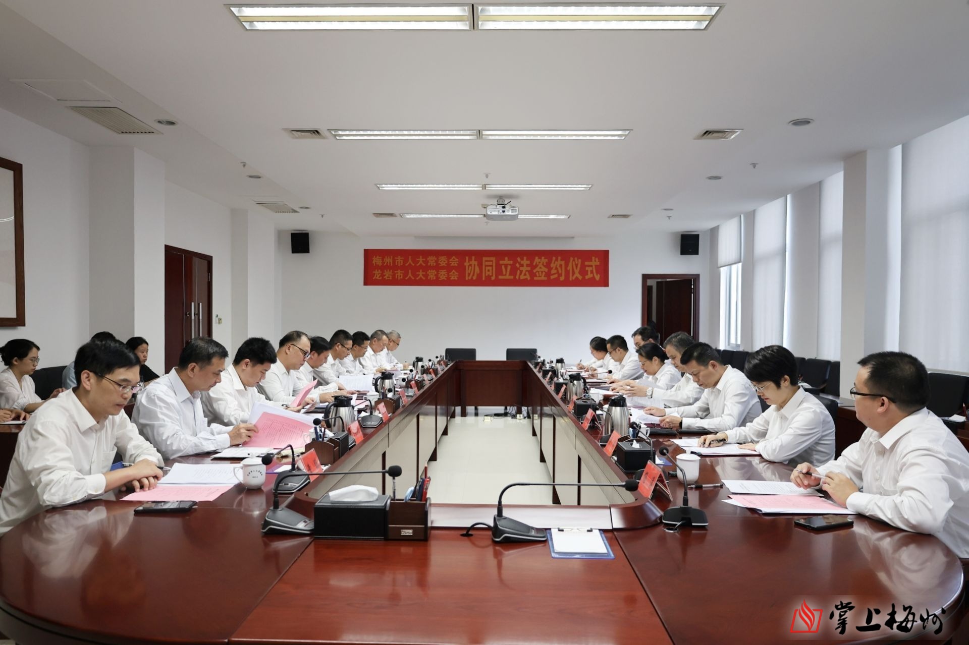 2024年,市人大常委会还开创我省设区的市跨省区域协同立法先河。为深刻吸取“6·16”特大暴雨灾害教训,保障人民群众生命财产安全,市人大常委会迅速行动,增列暴雨灾害预警与响应立法项目。及时研究落实党的二十届三中全会关于“探索区域协同立法”的部署要求,立足梅州龙岩地缘相近、山水相连,有共同的立法文化背景、现实需要这一实际,主动与福建省龙岩市人大常委会沟通联系,达成协同立法共识,签订合作协议,通过协同调研、协同立项、协同审议等开展合作,为全省推进设区的市跨省区域协同立法先行先试、探索经验。条例草案已于去年11月经市人大常委会初次审议,各项工作正在有条不紊推进。