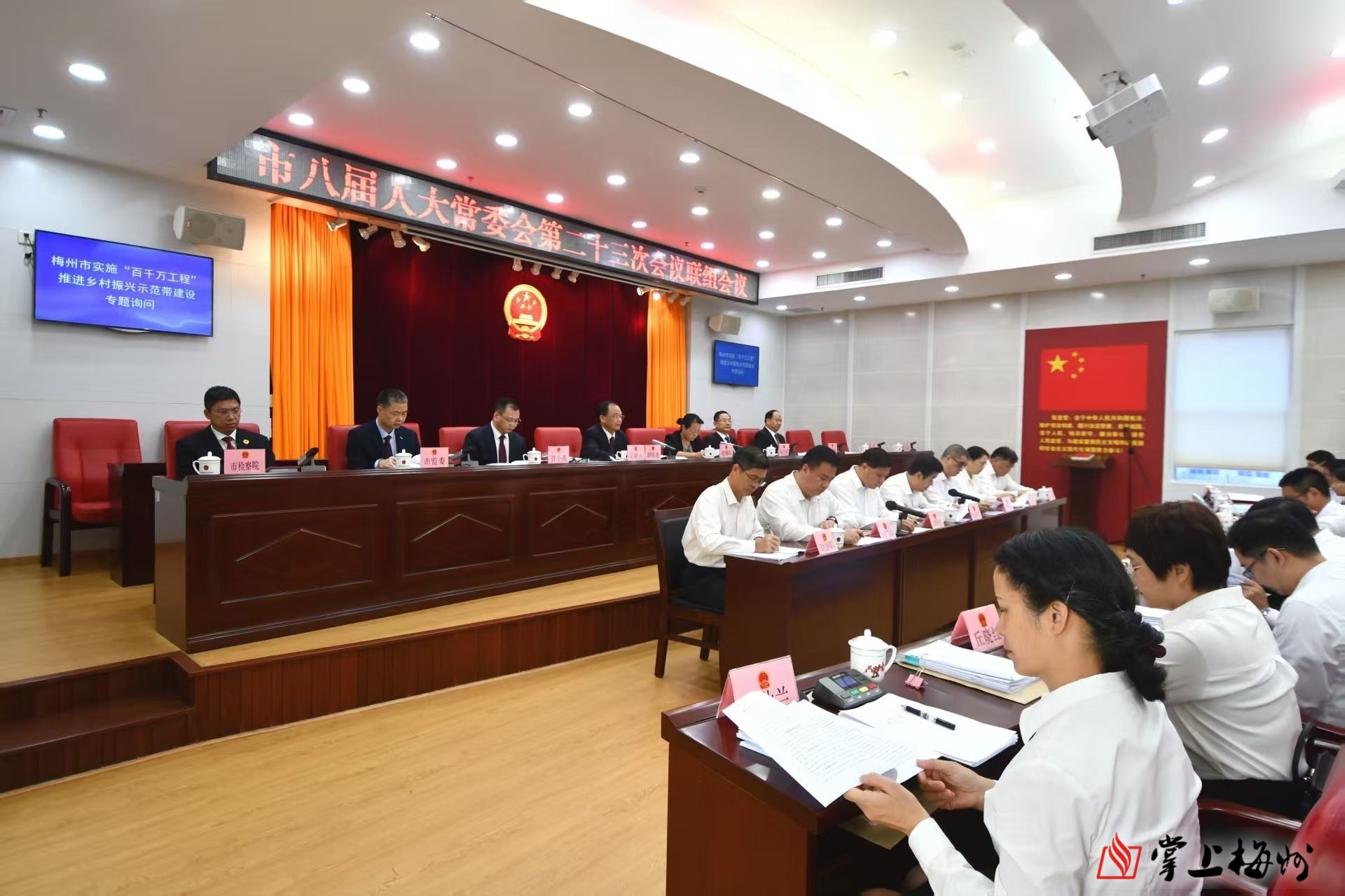 市人大常委会坚持把实施“百千万工程”作为服务市委中心工作的“头号工程”。2024年5月,市人大常委会针对2022年度市级预算执行和其他财政收支审计查出突出问题整改情况召开专题询问会,把询问视角聚焦在“百千万工程”、苏区融湾先行区建设、绿美梅州生态建设等重点领域,将近年来普遍存在、反复出现、关注度高的4个方面8个难点热点问题作为询问重点,以“人大之问”,切实推动审计查出突出问题整改见行见效。