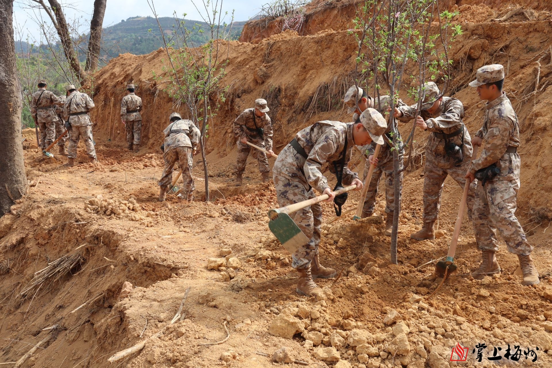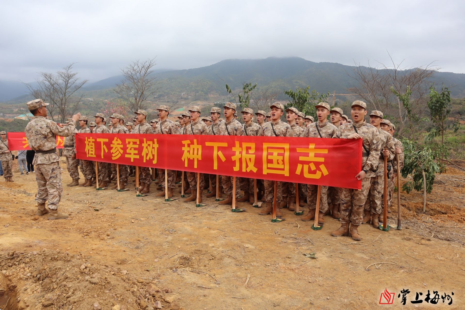 掌上梅州讯 “植下一棵树,便是一份对未来的期待;守护一片绿,就是一份对家园的责任。”3月14日,梅州军分区积极响应省委、省政府关于绿美广东工作部署,落实市委、市政府通知要求,组织官兵、文职人员和新兵同志们在兴宁市黄槐镇四望嶂绿美广东生态建设示范点,和市县镇村干部、群众代表一同挥锹铲土,为大地增添新绿,以实际行动诠释拥政爱民的深厚情怀。