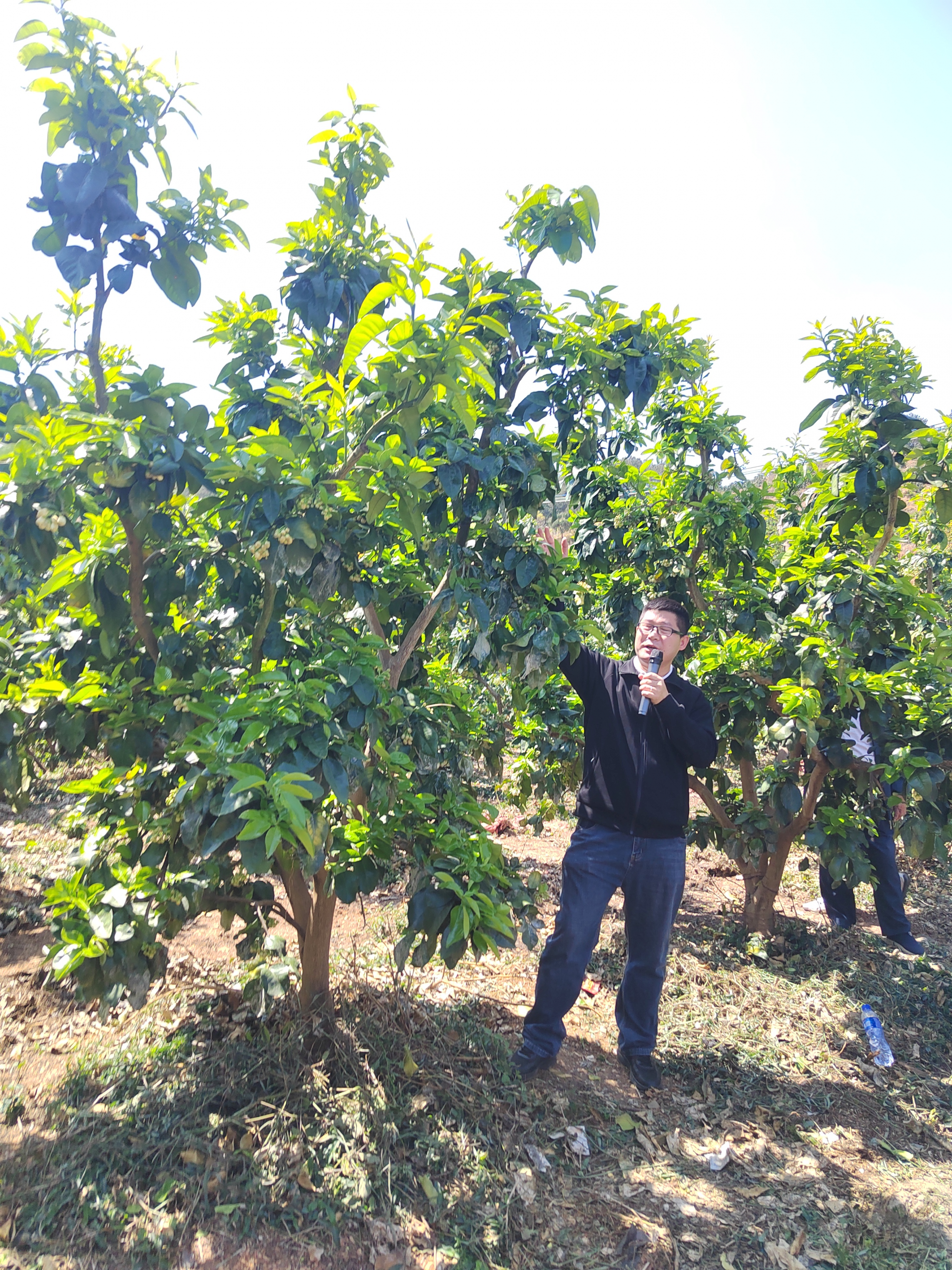 在宝鑫家庭农场柚园内,“田间课堂”直面春季管理痛点。果树研究所所长李国华研究员现场演示土壤检测技术,倡导“减肥增效”理念,破解盲目施肥导致的土壤退化难题。针对春季高发的黄龙病、溃疡病等病害,苟文涛博士推广生物诱捕和疏枝修剪技术,并特别提醒:“倒春寒风险下,需结合果园小气候监测,提前做好预防,保障花蕾发育正常”。参训柚农表示:“以前凭感觉剪枝,现在知道每簇花蕾保留2-3朵最科学,减少养分消耗提高坐果率”。