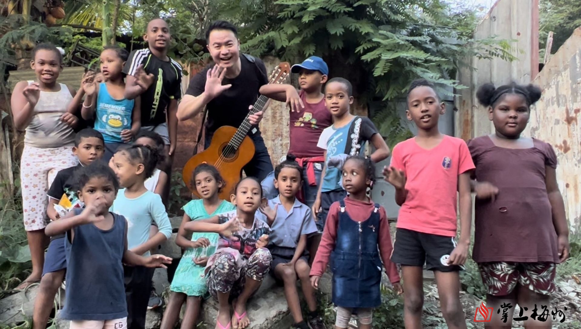 陈善宝在非洲毛里求斯路易港贫民窟与孩子们亲切互动