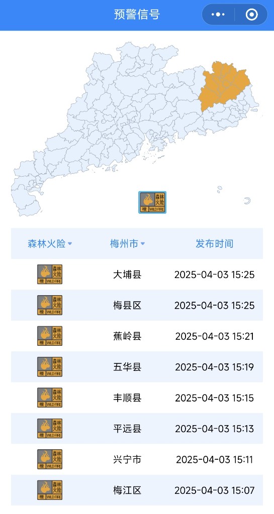 掌上梅州讯 当前,我市森林火险橙色预警信号正在生效中,容易发生森林火灾,市民朋友在清明假期期间,要提升森林防火意识,严格遵守相关法律法规及森林防火规定,加强野外火源管控,防止森林火灾发生,共同守护绿色家园。