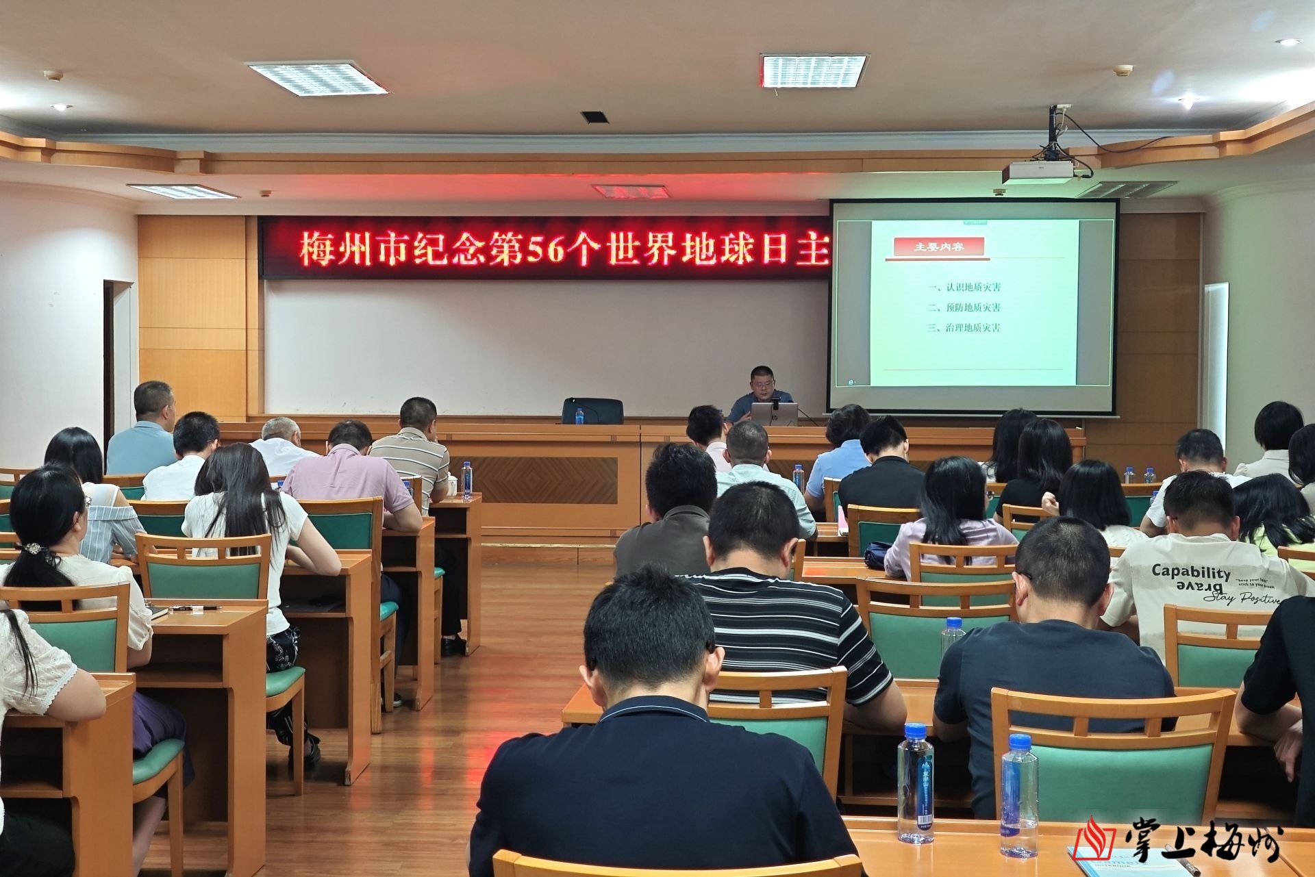 4月23日下午,梅州市自然资源局开展世界地球日主题宣讲活动,市地环站专家廖武坚介绍地质灾害防治管理相关知识。(江婵 摄)