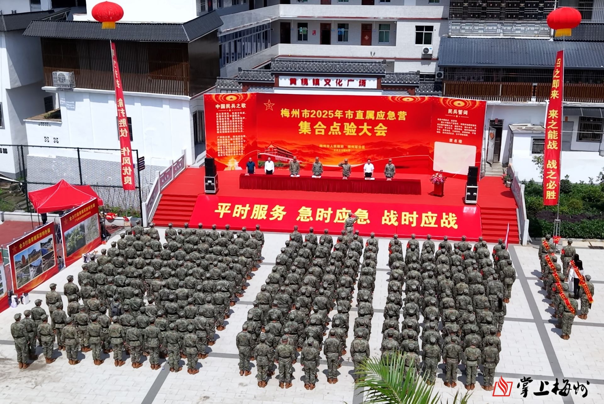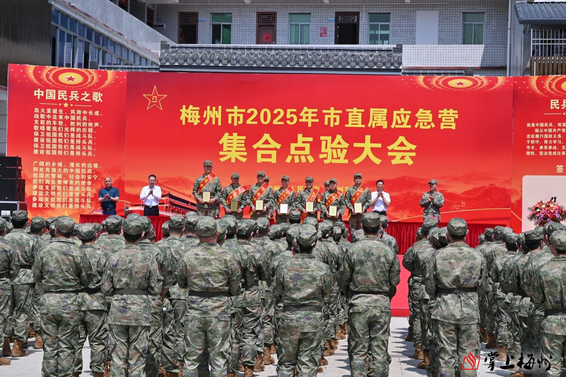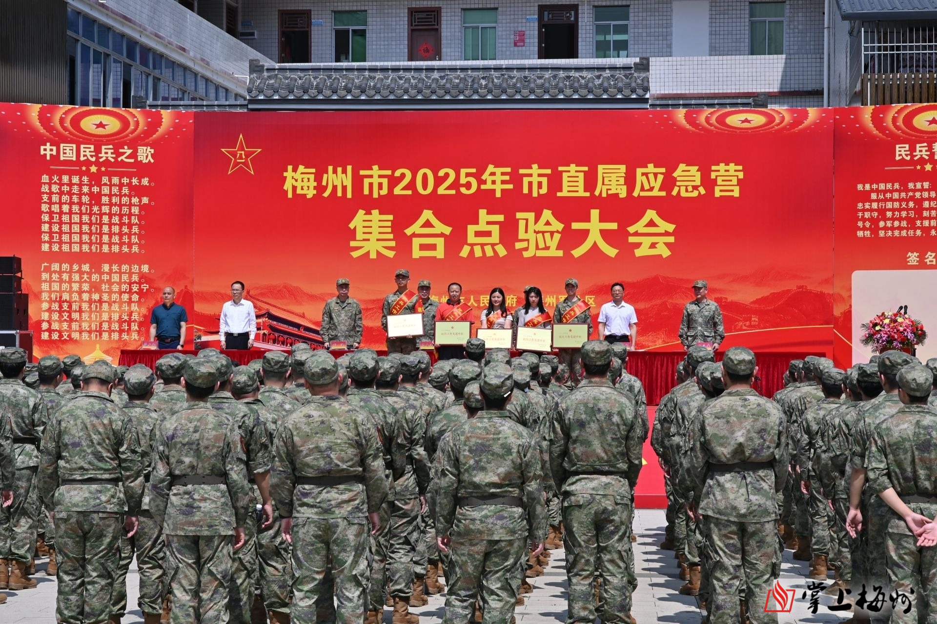 掌上梅州讯 集结鸣号角,点验砺兵锋。4月29日,梅州市政府、梅州军分区组织在“军旅特色镇”兴宁市黄槐镇召开梅州市2025年市直属民兵应急营集合点验大会。梅州军分区领导起奎,市委常委、梅州军分区领导贾文进参加大会。