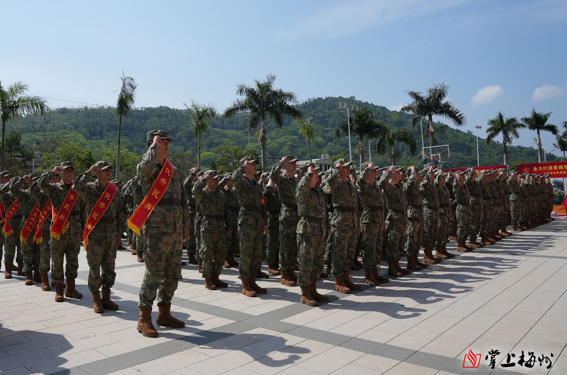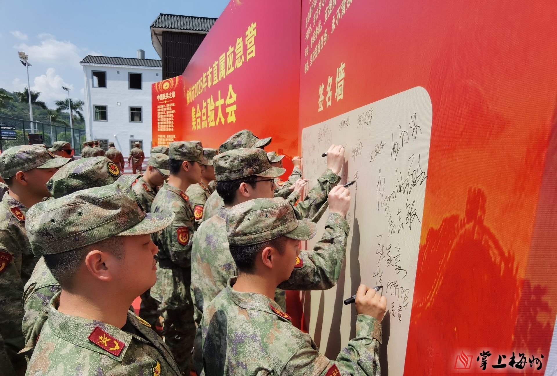 上午10时,大会在雄壮的《中国人民解放军军歌》声中拉开帷幕。全体民兵军容严整、精神抖擞,以饱满的热情和昂扬的斗志接受点验。其间,梅州军分区领导宣读民兵干部骨干任职命令,通报民兵工作先进单位、先进个人名单,宣读出入队名单、组织人员呼点。随后,与会全体民兵进行庄严宣誓,新入队民兵代表发言。
