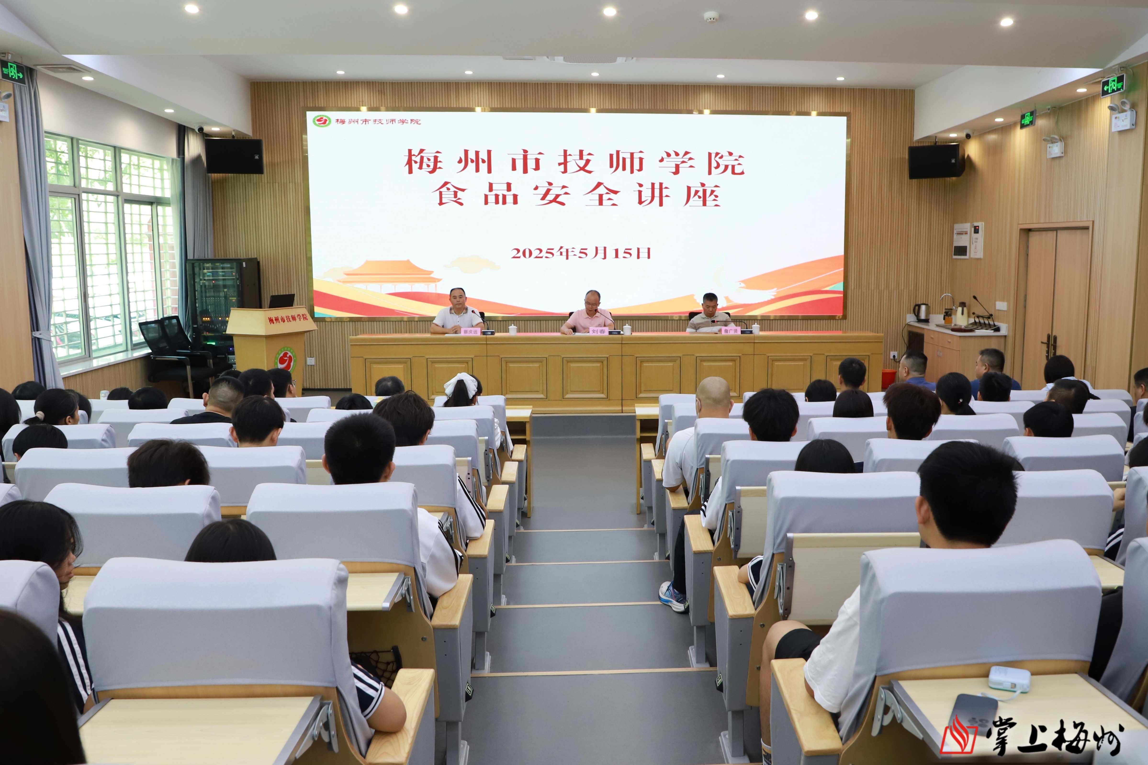 掌上梅州讯 5月15日下午,梅州市食药安办在梅州市技师学院开展“守护舌尖安全,共筑健康校园”食品安全讲座,学校各系学生代表和食品(餐饮)从业人员等共180多人参加活动。
