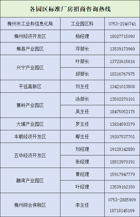 “免费生产”的标准厂房作为产业聚集和中小企业孵化的载体,无论是初创企业,还是上升期企业,签约即可“轻装入驻”,为企业发展拔得头筹。欢迎企业联系各园区招商负责人,了解更详细的情况。