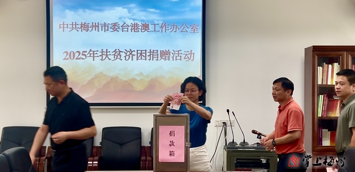 掌上梅州讯 7月1日上午,市委台港澳办开展2025年“6·30”扶贫济困爱心捐款活动,市委台港澳办主任洪国华等领导班子及全办干部职工参加活动并捐款。