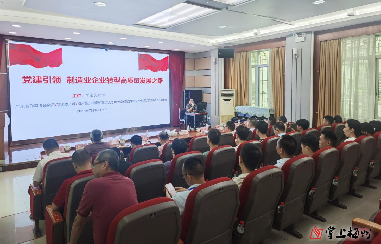 开班仪式结束后,梅州开放大学校长罗金良为学员们带来了题为《党建引领,制造业企业转型高质量发展之路》的首场讲座。他结合当前制造业发展的新形势、新任务,深入阐述了党建引领在推动企业转型高质量发展中的重要作用和实践路径。讲座内容丰富、思想深刻,为学员们提供了宝贵的理论指导和实践启示。