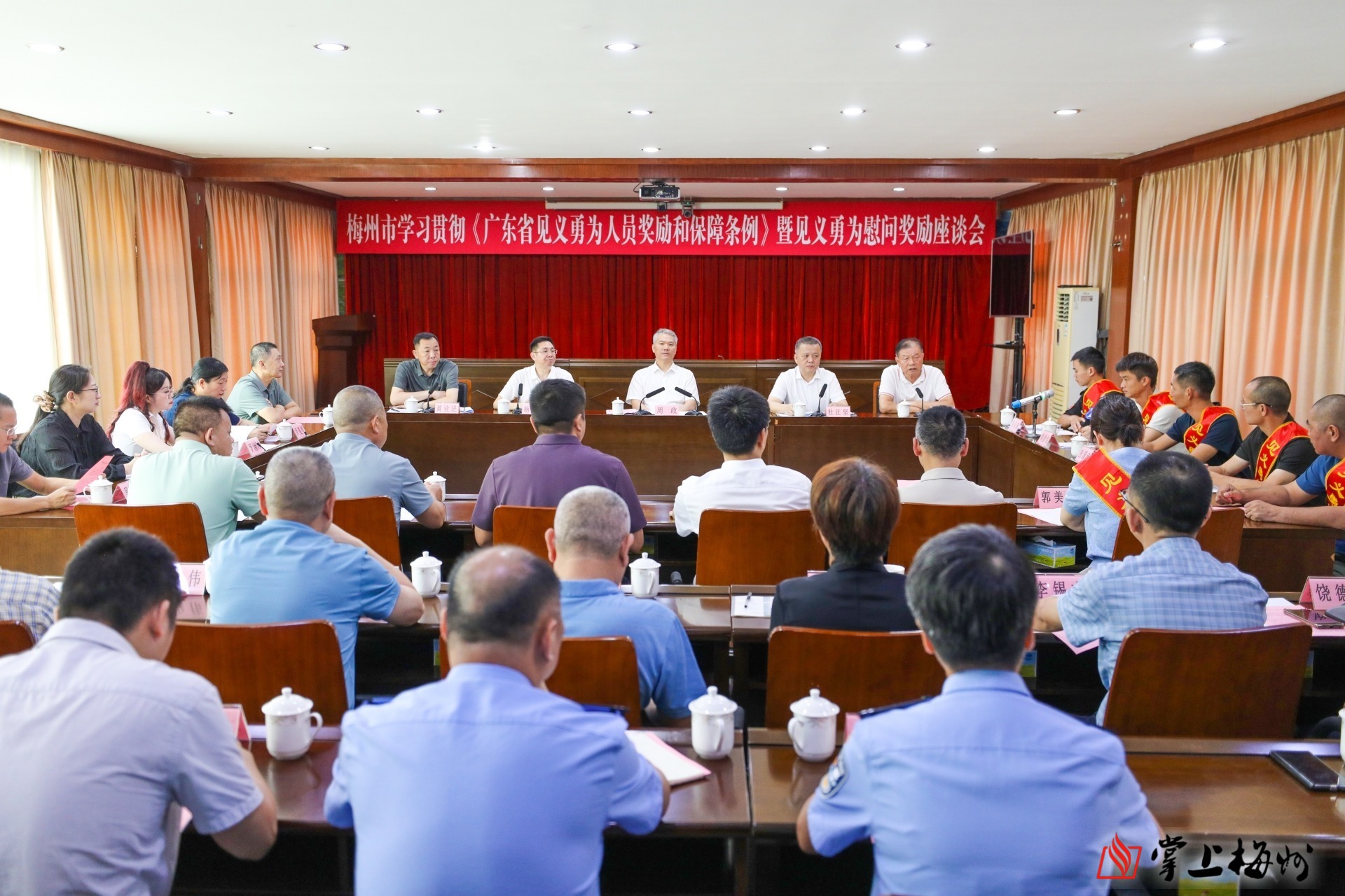 7月17日,梅州市召开见义勇为慰问奖励座谈会,表彰见义勇为先进典型,传递党和政府及社会各界对见义勇为人员的关怀,弘扬社会正气,营造崇德向善、见义勇为的良好社会风尚,为建设更高水平的法治梅州、平安梅州提供强大的精神动力和道德支撑。