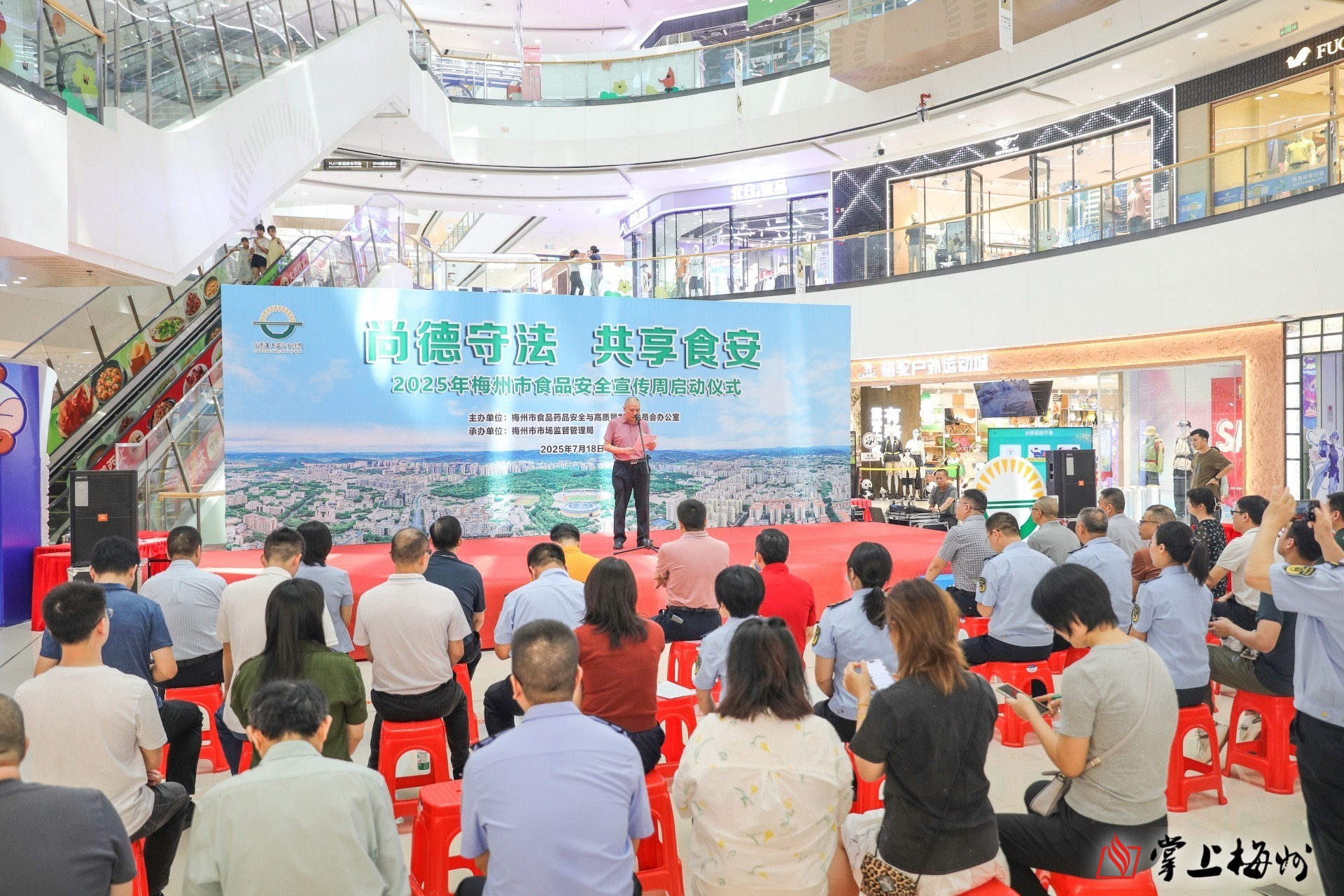 掌上梅州讯 7月18日,“尚德守法·共享食安”2025年梅州市食品安全宣传周启动仪式在梅江区万达广场举行。活动由市食药安办主办,市市场监管局承办,梅州日报全媒体提供媒体支持。