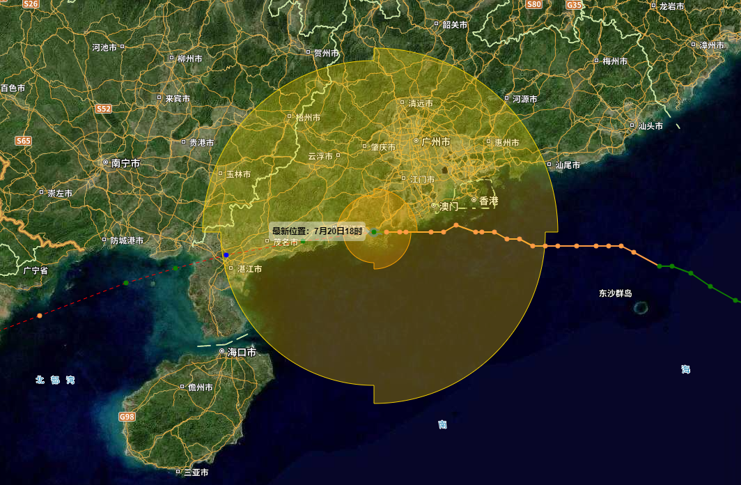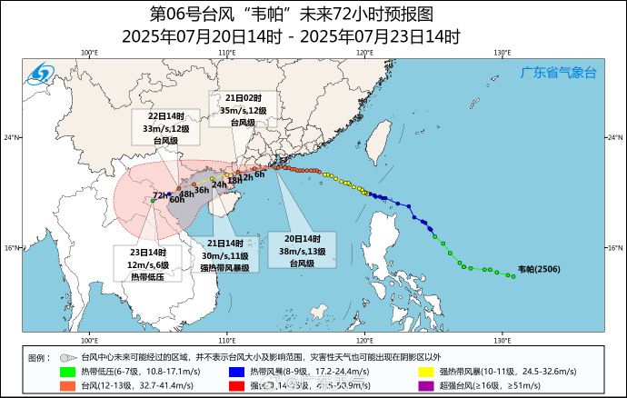 【7月20日 10:00】“韦帕”已加强为台风级,未来继续西行!今天白天到夜间我市南部有大雨到暴雨