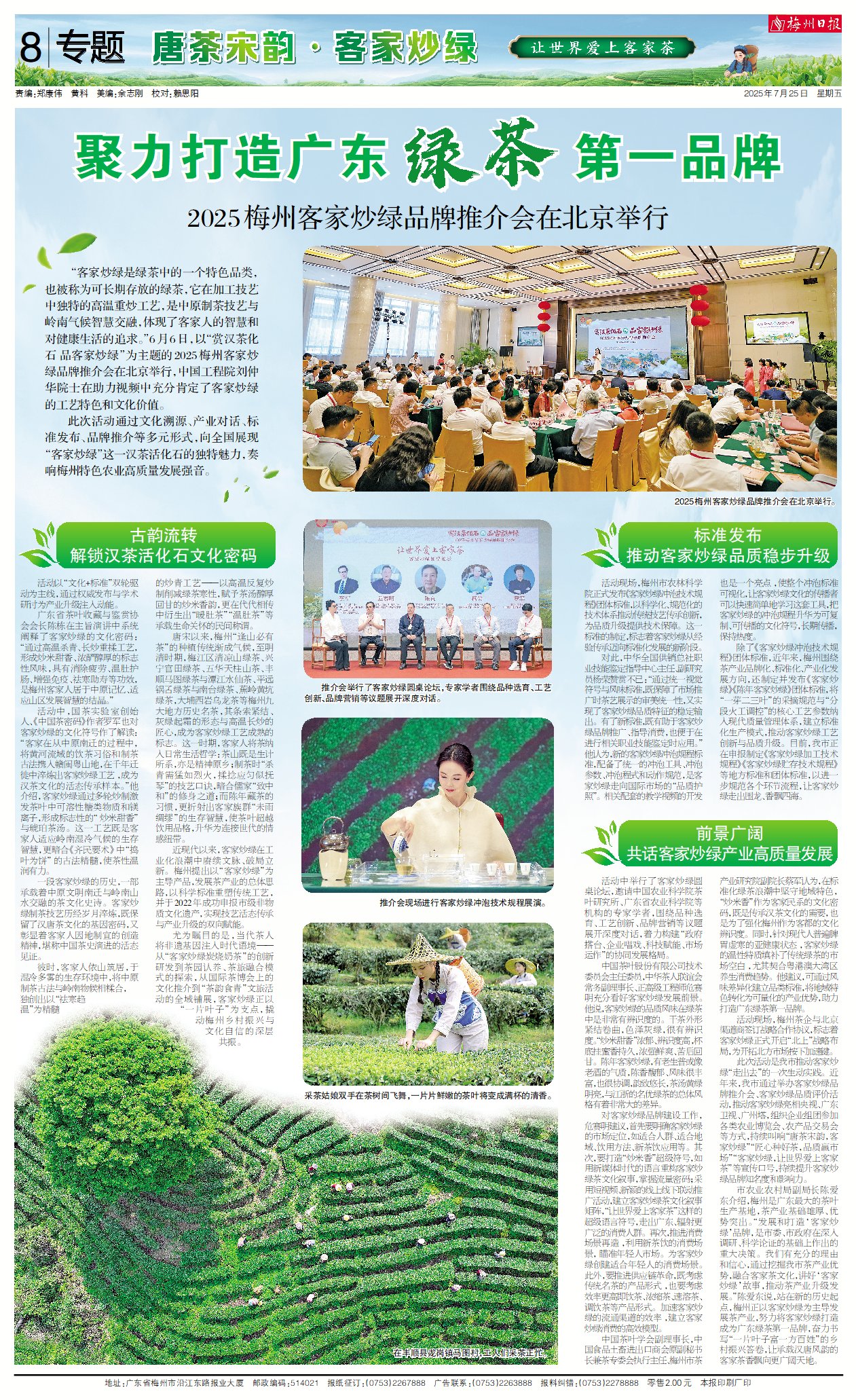 此次活动通过文化溯源、产业对话、标准发布、品牌推介等多元形式,向全国展现“客家炒绿”这一汉茶活化石的独特魅力,奏响梅州特色农业高质量发展强音。