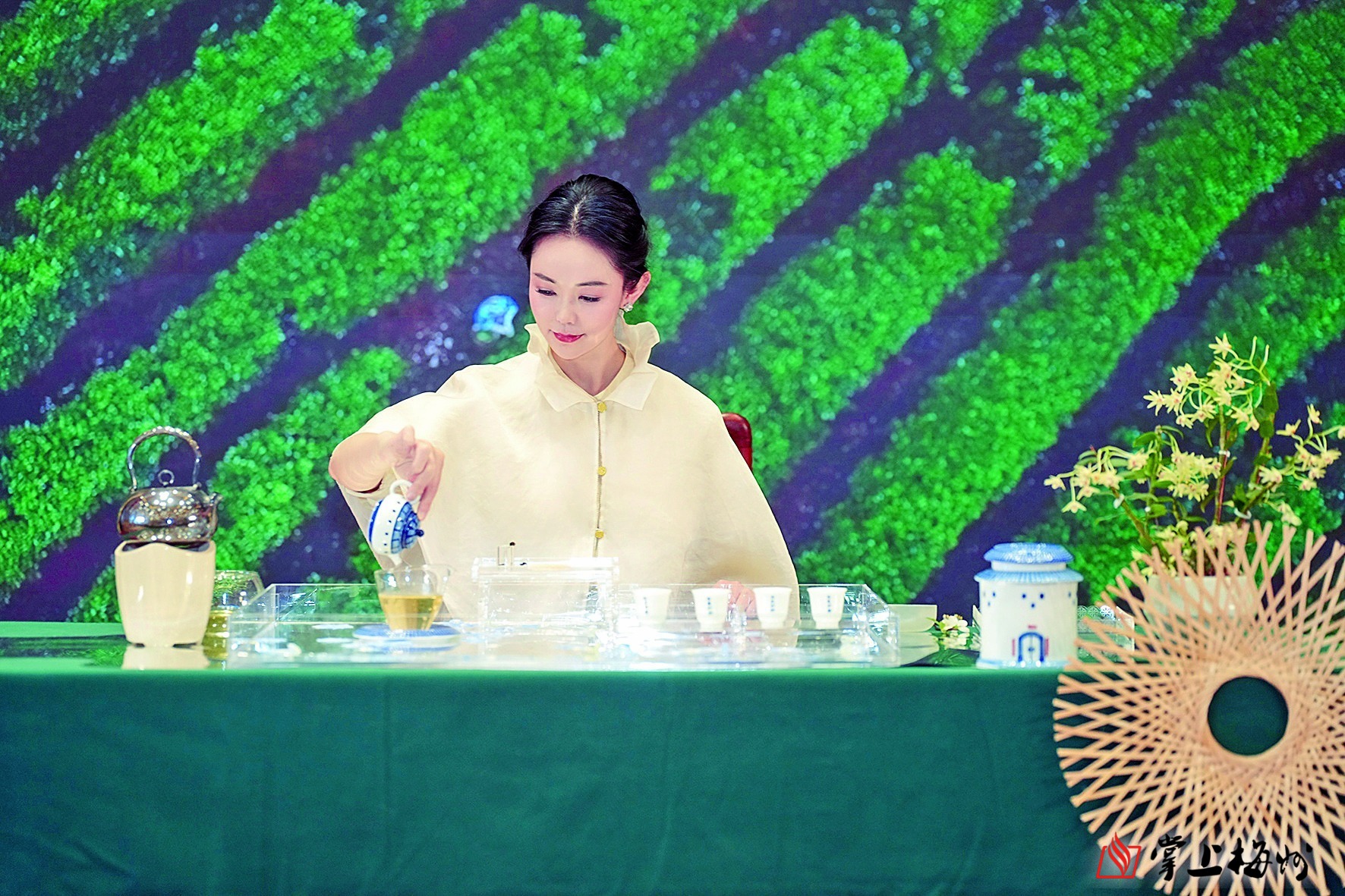 推介会现场进行客家炒绿冲泡技术规程展演。