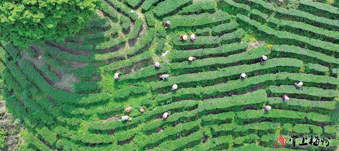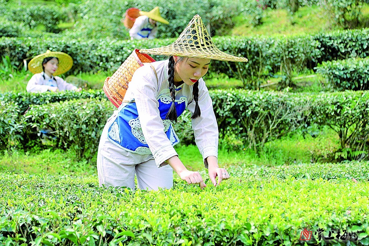 采茶姑娘双手在茶树间飞舞,一片片鲜嫩的茶叶将变成满杯的清香。