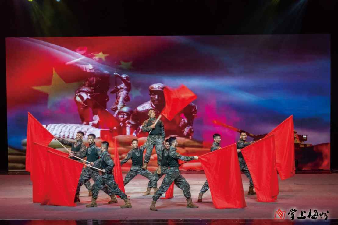 晚会在战鼓催征《龙腾虎跃》中拉开序幕,鼓声阵阵、激荡人心,舞龙、舞狮密切配合,展现官兵奋进强军梦的磅礴青春力量。诗朗诵《剑魄诗魂照山河》,让观众在深情朗诵中回望叶剑英元帅波澜壮阔的峥嵘岁月。“最后一尺布,用来缝军装”“最后一碗米,用来做军粮”《天下乡亲》的歌声中回荡着血浓于水的军民情深。武术《精忠报国》是官兵将传统武术与格斗技术相结合,上演一场颇具军营特色的武术表演。节目《丝绸之路》带观众领略不一样的“丝路百族风情”。节目《客家歌曲联唱》唱出了梅州人民最鲜活的生活印记。由军娃与梅州市街舞协会青少年合作的《改变自己》《转屋夸》,为舞台注入满满的动感与活力。杂技《力与美》呈现不可思议的静谧平衡之美。小品《我有一个梦想》是参演官兵结合抗洪抢险的亲身经历,深情讲述广大基层官兵将个人梦融入强军梦的生动实践。乐器重奏《庚续》演绎了艺术的传承与延续。“硬杠杠”是纪律、是标准,表演唱《我们班有道硬杠杠》以班长骨干的日常生活小事为主题,展现新时代“尊干爱兵、兵兵友爱”优良传统的浓厚缩影。广东省文艺志愿者协会副主席、广东歌舞剧院一级演员唐彪倾情演唱的《骏马奔驰保边疆》《红星照我去战斗》点燃全场热情。广东汉乐《平山乐》悠扬的旋律让人沉浸与陶醉。《中国军魂》《当那一天来临》的合唱唱出新时代武警官兵精神风貌。