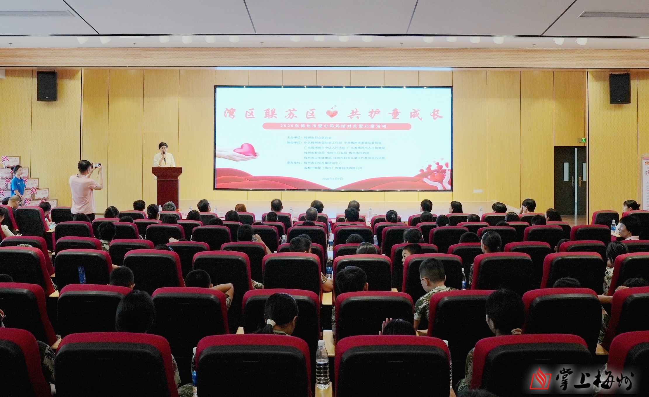 掌上梅州讯 8月9日,2025年梅州市“爱心妈妈”结对关爱儿童活动在梅州市梅江区尚学中小学生综合实践活动教育基地报告厅举行。市委常委、市委统战部部长崔毅,广东省政协常委吴彩华参与活动,市妇联党组书记、主席丘晓红主持活动。