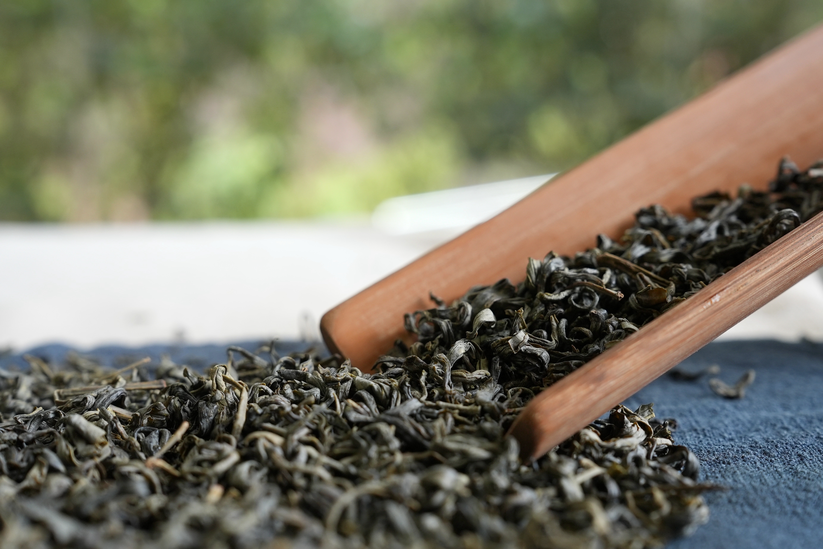 梅州有“千年茶乡”之称,茶叶生产历史悠久,其中客家炒绿的产量占梅州茶叶总产量的一半以上。客家炒绿是广东三大茶系之一,其历史可以追溯到1700年前的魏晋时期,乃至更久远的秦汉时期,是客家地区的代表性特产。客家炒绿采用独特的“重炒”工艺炒制而成,拥有炒米香和甜韵味,又称为“暖肚茶”“温肚茶”,喝起来香高持久、滋味醇厚、爽口回甘,深受海内外消费者喜爱。2021年,“客家炒绿制作技艺”被列入梅州市市级非物质文化遗产。