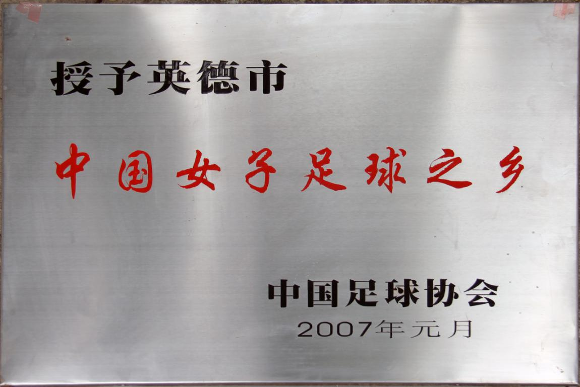英德是中国女足艰苦奋斗精神的发源地,被公认为“女足摇篮”、中国女足的“娘家”,2007年中国足协授予英德“中国女子足球之乡”的称号。位于英德市的国家女子足球英德训练基地成立于1986年7月12日,其诞生与中国女子足球的发展紧密相联,英德从1983年起就开始办女足,每年坚持搞一次全国女子足球比赛,每年冬训这里便成为集中全国各省市女足集训的地方。1987年开始,中国女足队员长期在英德女足基地集训、比赛,连续七届获得女足亚洲杯比赛冠军,在英德开始了冲出亚洲走向世界的步伐,20世纪90年代末,中国女足两夺世界亚军。