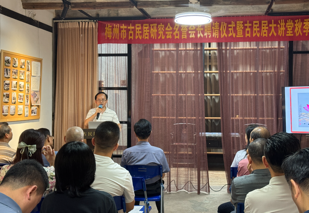 掌上梅州讯 8月17日,梅州市古民居研究会名誉会长聘请仪式暨古民居大讲堂秋季首讲在梅城江南玉庭楼举行。各界专家学者、梅州市古民居研究会会员等约50人参与活动。